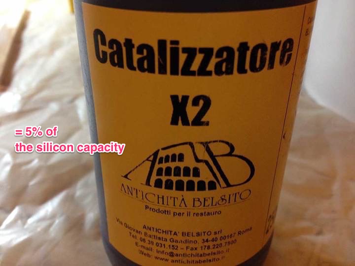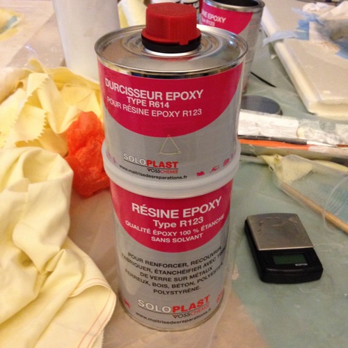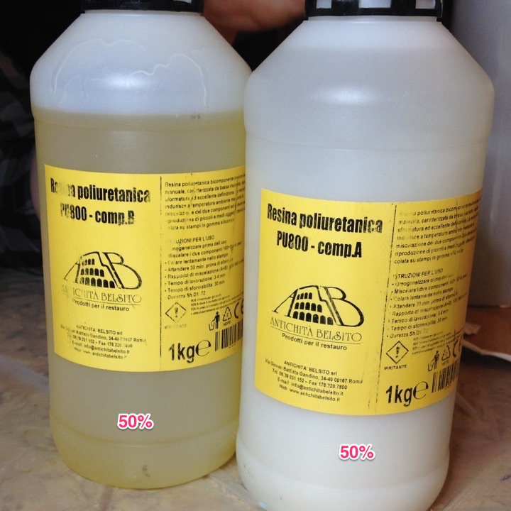 Mixing in a plastic 2 components of resin, and some aluminium pouder for the color... the casting must be done quickly after the mixing.
