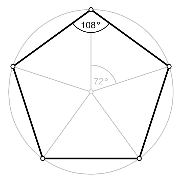 I like pentagons for many reasons but the most important of them is that pentagons contains "Golden Triangles". That means pentagons contains an ideal proportion, called "Divine Proportion".