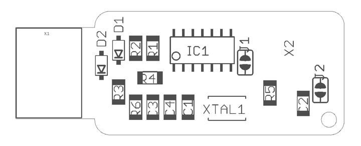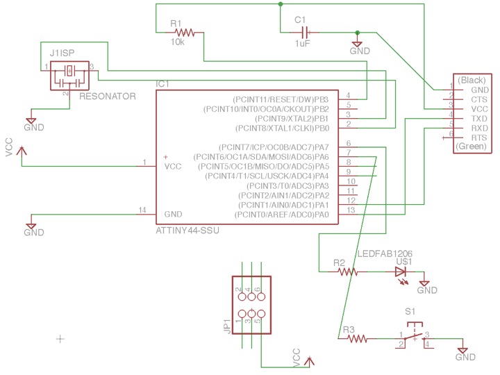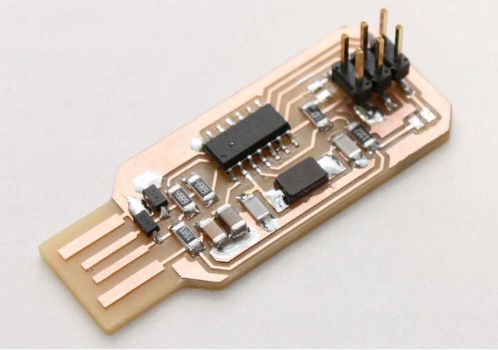 The function of the FabISP is to programm easily any microcontrollers for any PCB (=board), by using nothing but a single USB cable.