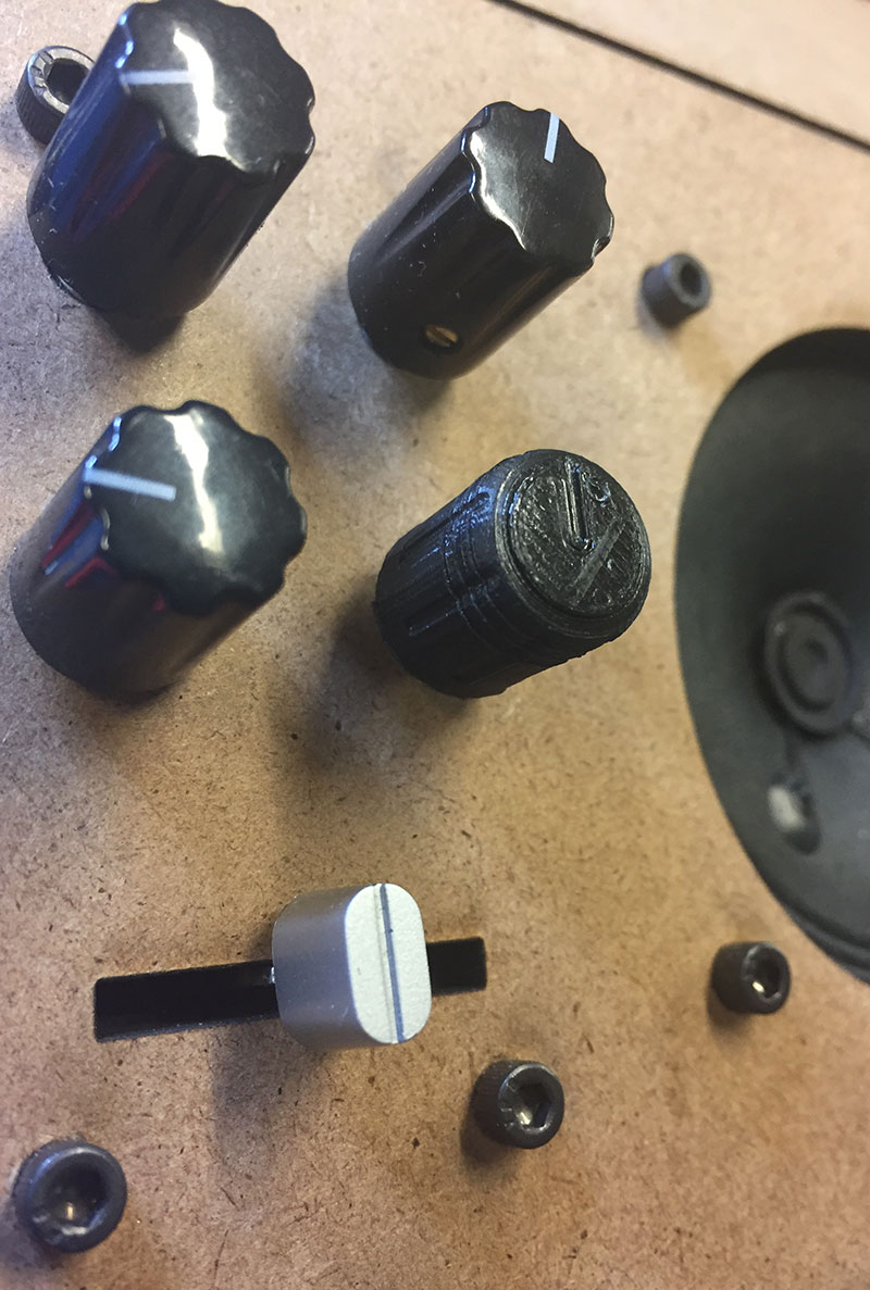 As an initial test towards these ends, I 3D printed a knob (whose author released its plans under a Creative Commons license and made it freely available via Thingiverse both as an .stl file and as an OpenSCAD file) for the rotary encoder I am using on the current iteration of my project. I am interested in using this as a baseline for future experimentation.