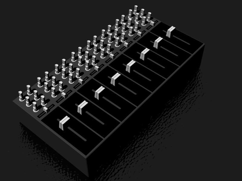 In moving forward, I am also considering replacing the center-detent horizontal faders with full-length Technics 1200 style pitch controls, adding a bit more spacing between knobs, and replacing the Alpha 9mm linear potentiometers used for setting oscillator frequency with 10-turn knobs and precision potentiometers. I am also not completely sold on the necessity / utility of the endless rotary encoders in the continued development of this system, and may substitute them for SPDT (on-off-on) switches.