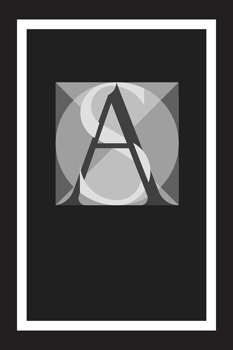 To start, the letterform grid had to be simplified to a single circle with diagonal axes. Then instead of distinguishing the grid and letters through color or fill vs. stroke, each of the elements needed to be separated by height.