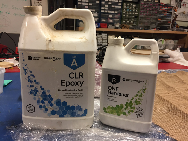 To make the mold, I first modeled the shape in Rhino, then inverted it so that I could make a one-part mold with the surface of the cast at the bottom of the mold. I then cast the mold using a composite of burlap and Super Sap CLR Epoxy resin (2 parts epoxy to 1 part ONF Hardener). After coating the foam in plastic wrap (to act as a mold release), the resin was applied to the burlap using a plastic applicator.