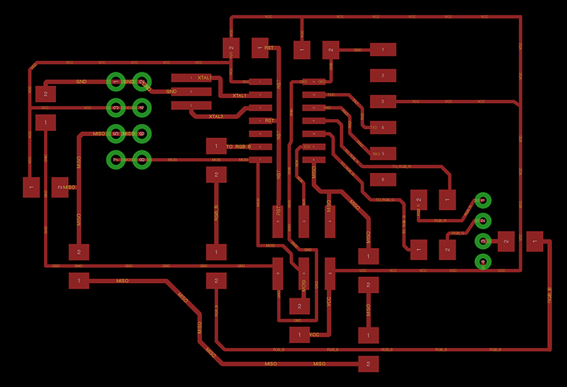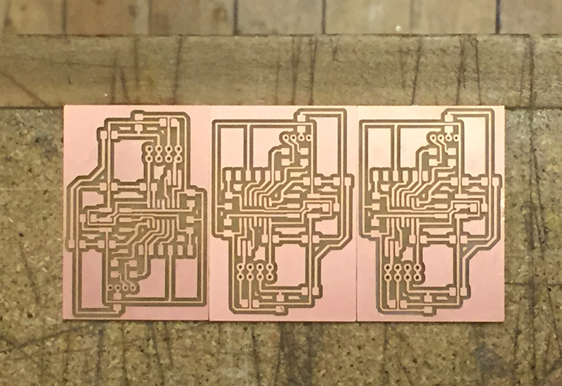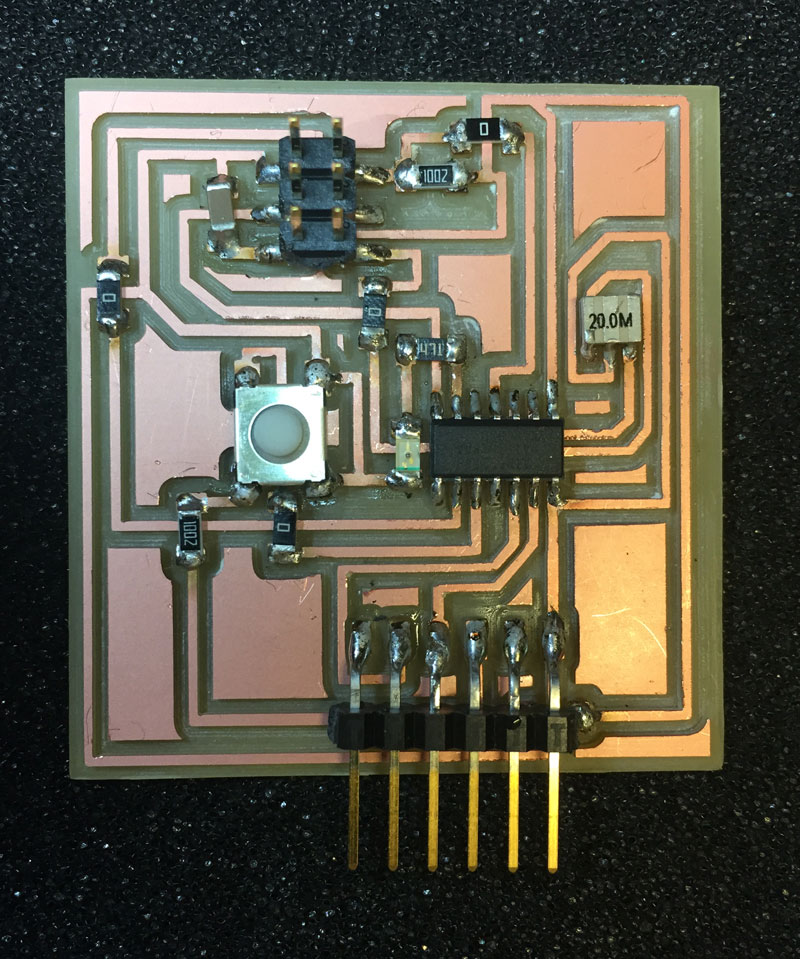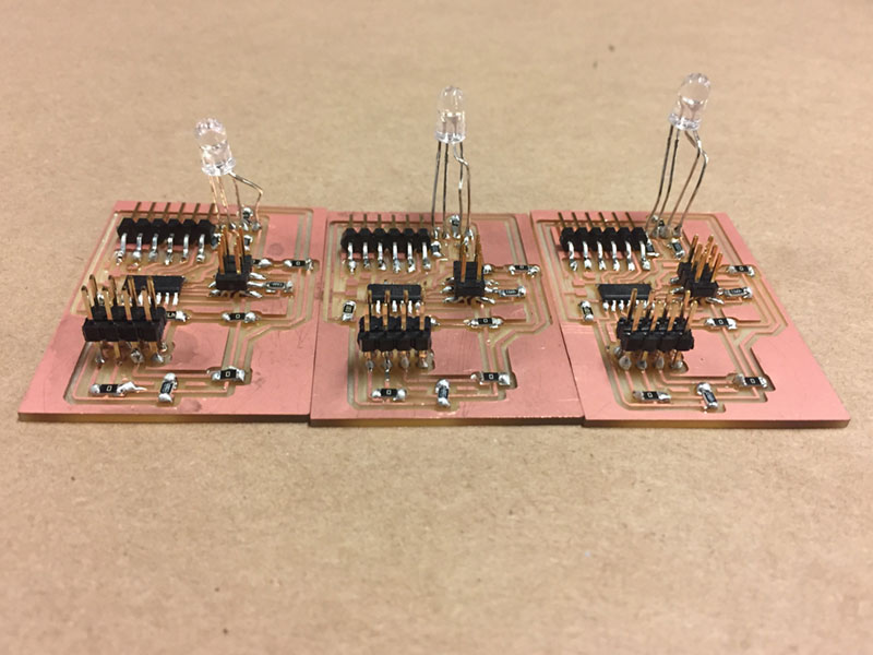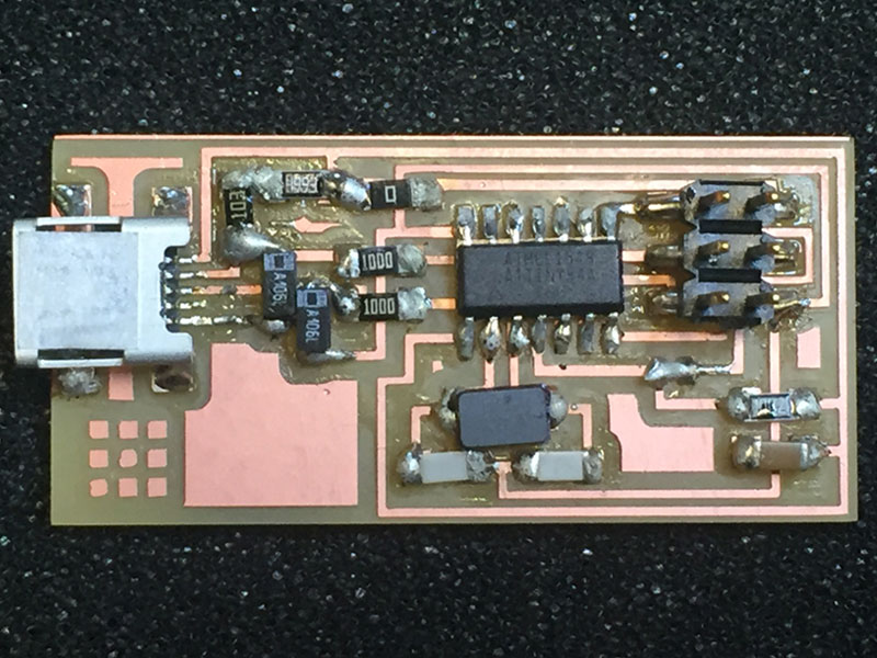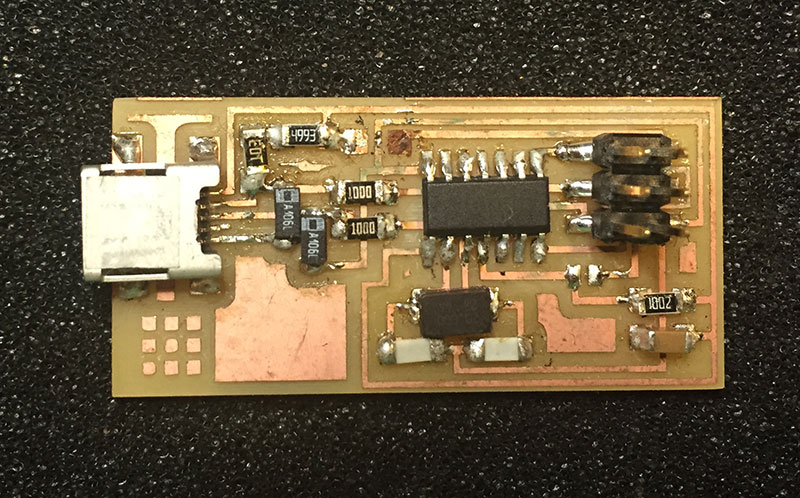 Having addressed these issues, I then began the process of designing the boards for both the AtTiny84 and the components, and milled them.