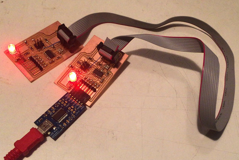 Milled, hand-soldered, and programmed the FabISP in-circuit programmer. I was able to flash the board but did not use it to program any other boards.