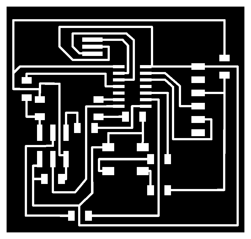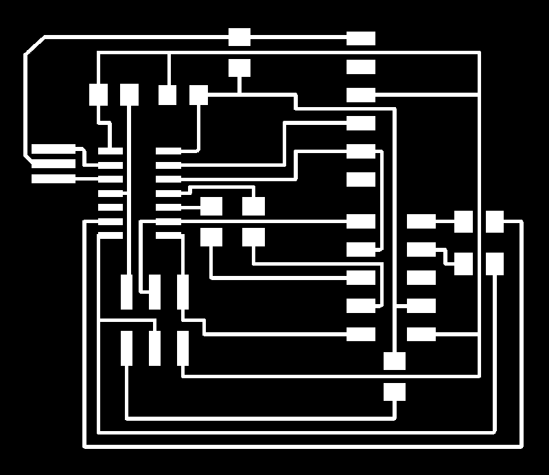 Once I had completed routing the wires, I used EAGLE’s DRC tool to ensure that there was a space of at least 16mil between all Wires and Pads, and exported the board as a 1000dpi monochrome .png image file.