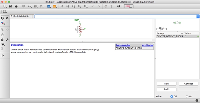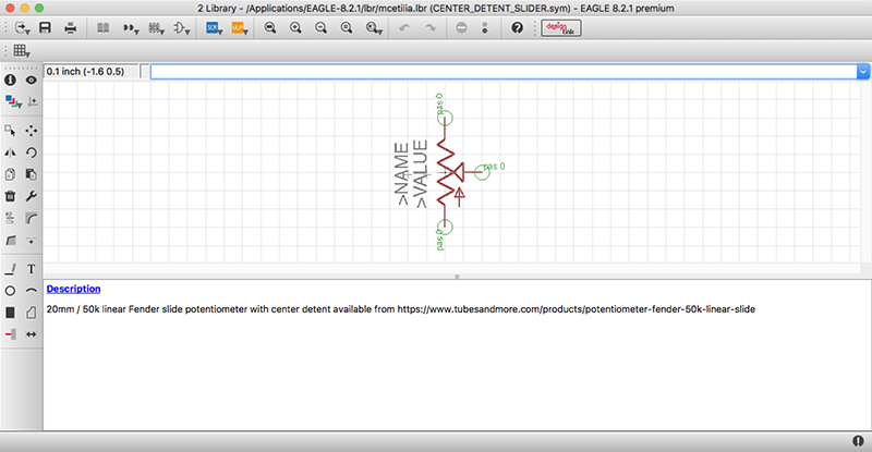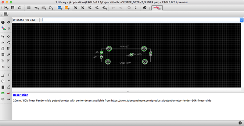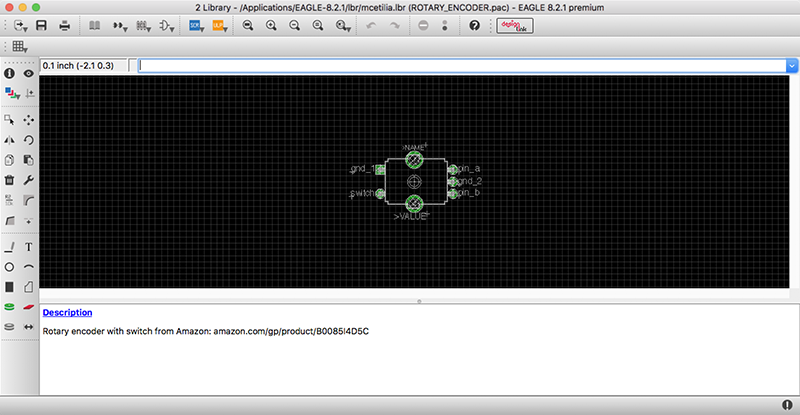 Made good progress towards my final project this week. First, I measured the components I would be using for my final project but not have Eagle library parts for, and began my own Eagle library to house them. Given that I could not locate data sheets for either the rotary encoder or the center-detent horizontal fader I am using for my final project, this was a somewhat laborious process involving laser-printing mockups to scale, and pushing the components through the paper to determine slight differences in positioning (at increments below the measuring capability of the set of calipers available to me) to ensure an exact fit for the parts on the board. It is worth noting that Eagle will allow you to print directly from your library, so there is no need to place your part in a board, export an image, and print that image (I discovered this somewhat later than might have been optimal).