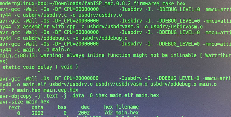 used the make hex command,