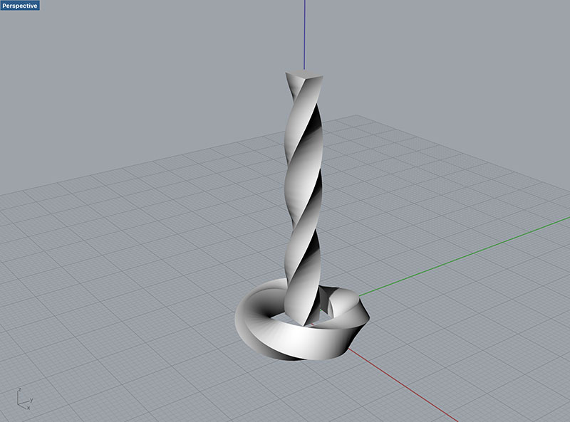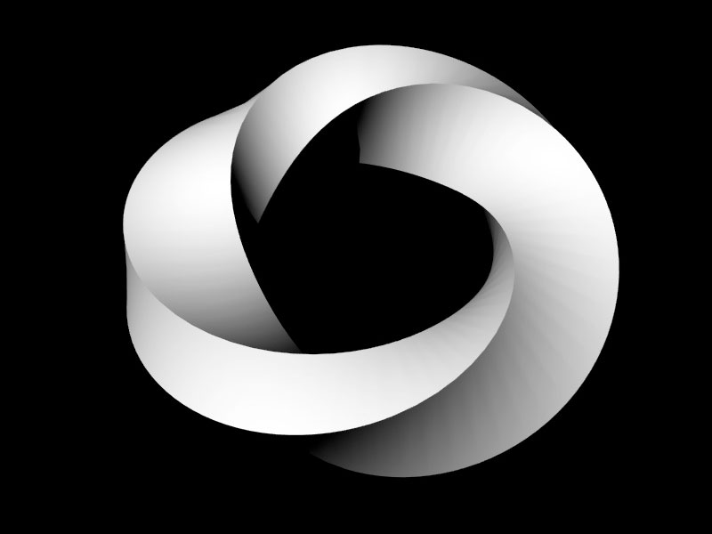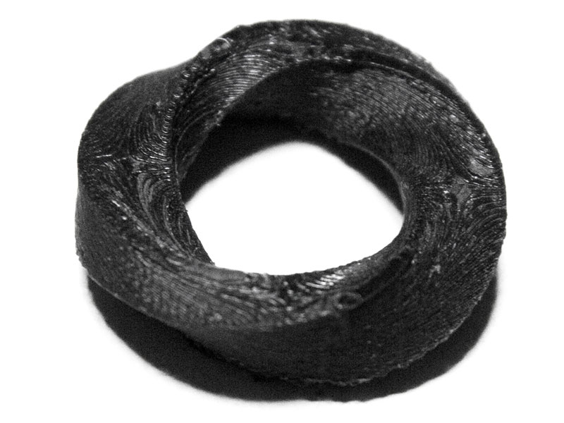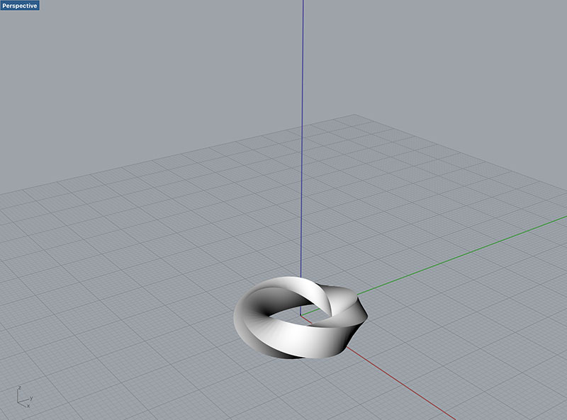 Finally, I modeled a Mobius ring in Rhino, after a tutorial in Michael van der Kley's Working with Rhinoceros 5.0. In order to create a Mobius ring in Rhino, you simply create a rectangular solid beam, then use the “Twist” Tool (under Deformation Tools) to twist the beam 360 degrees over its length.