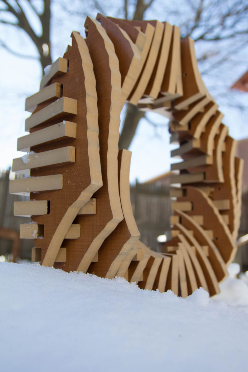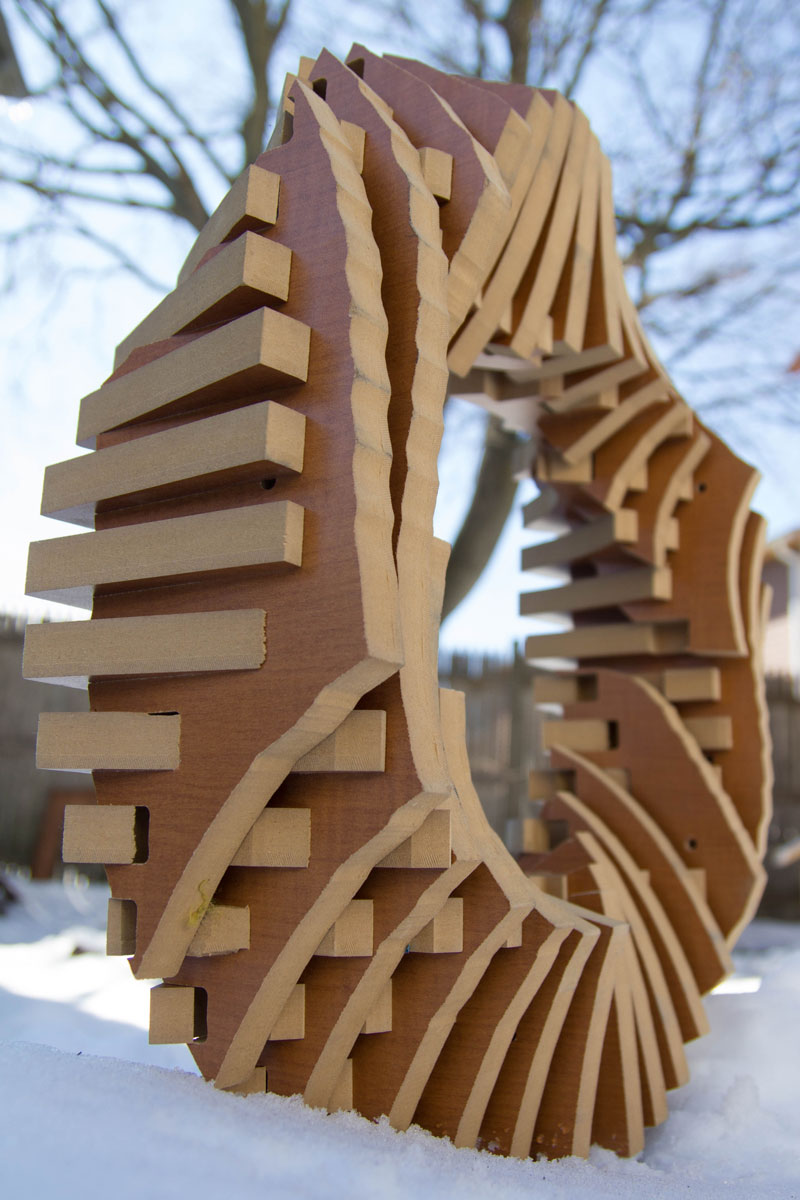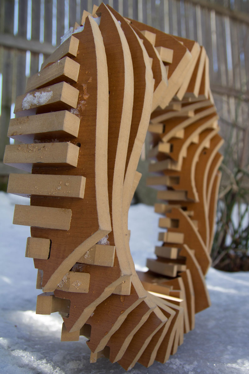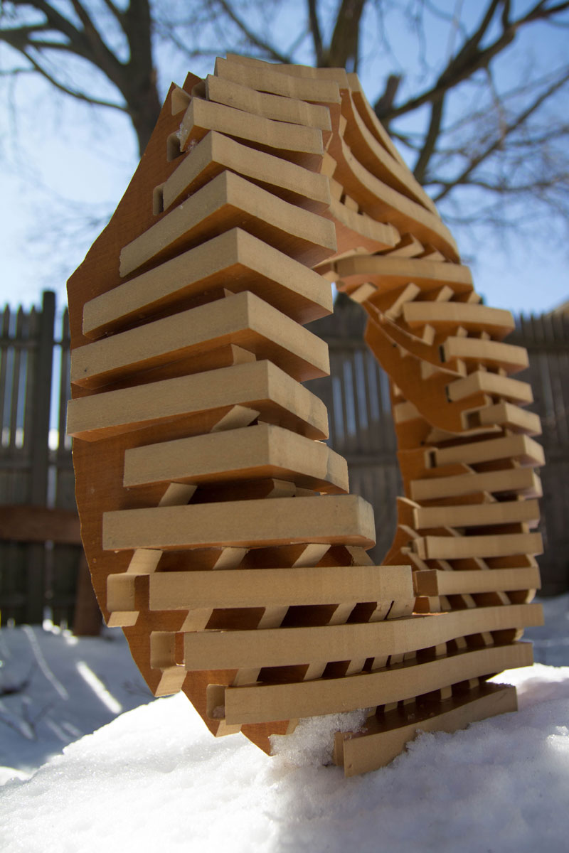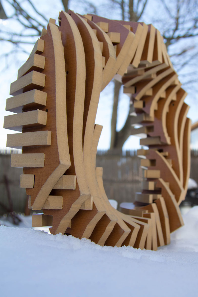 Once all the slices were cut, I removed each one with its label intact, and began the physical construction process. With over 50 tightly-spaced pieces, the process of putting the ring together was achieved through a laborious process that involved starting from the middle of each of the sides of the ring and moving inwards.