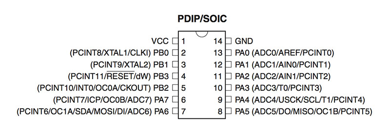 First of all, it is important to note that the AtTiny has two ports: Port A and Port B. Port A is an 8-bit bi-directional I/O port, while Port B is a 4-bit bi-directional I/O port; both host internal pull-up resistors that may be selected for each bit.
