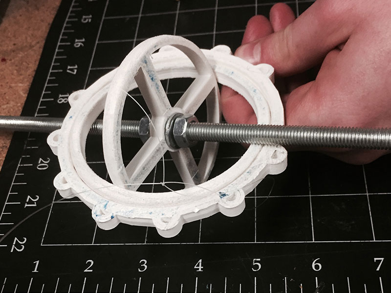 We spent a great deal of time deliberating about possible directions for our group project, and finally decided to build a 3-axis string-guided gimbal loosely inspired by the SkyCam. My primary contributions to this week's assignment centered around installing and testing the device, while Evan built the gimbal, Jose constructed a simplified pulley structure, and Eddie focused on documentation.