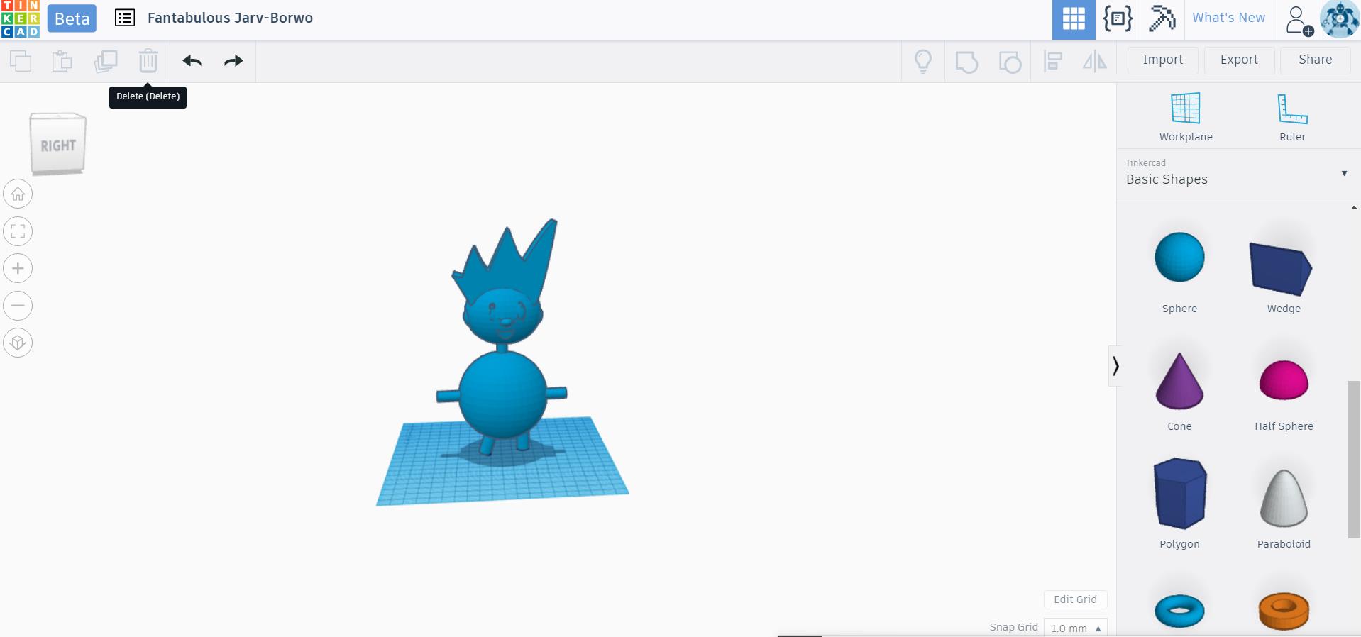 I have no experience of 3D design. So I try to find a software which is easy to learn. Tinkercad is an easy-to-use 3D CAD design tool.It is based on web. It is convenient for me to use it. I can export imprort documnet in form of stl, obj and svg. I Found it difficult for me to draw some complicated part of robot like hair and mouse. Lucily , it can import svg which can be made in Inkscape. I drew them in Inkscape and import them into Thinkercad. Although they are 2D, I can switch them into 3D in Thinkercad.