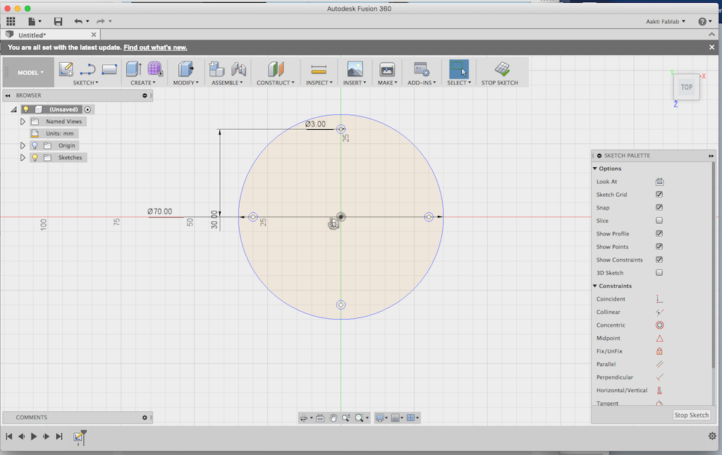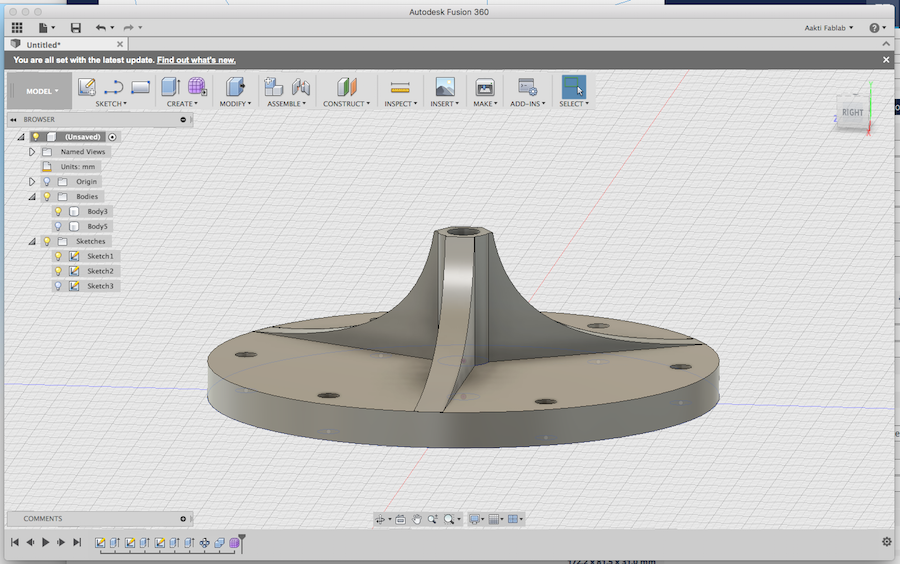 For the machine design assignment, we need 3D printed parts that connect our discs to our stepper motors. (I will do it this way here in Finland; Charlie will decide if he will do it this way in the UK or another way - as he has the motors with the integrated threaded shafts.) (See our page here. While Charlie's design was printing on the ZYYX, Niklas showed me a few things on Fusion360, and we created our own version of the shaft mount. This is not yet a full documentation, as I will do this exercise later, but some hints I wrote down.