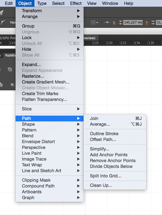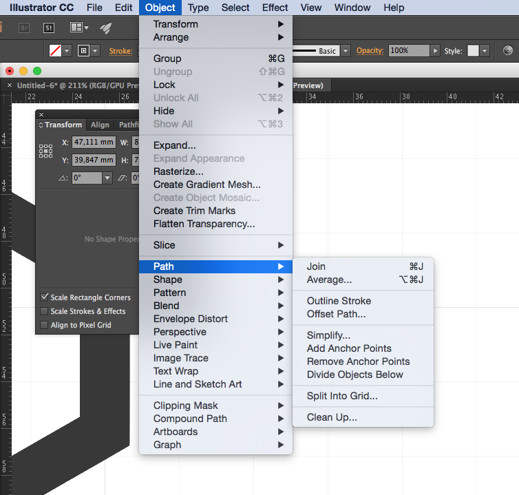 But I continued to have problems joining paths and trying to break paths at anchor points. I started drawing the thing again and by trial and error clicking on 'merge' and 'group'. Of course this is the problem with the documentation - I just did this without remembering to take screenshots.
