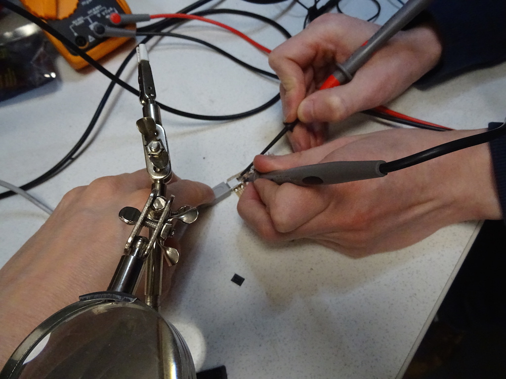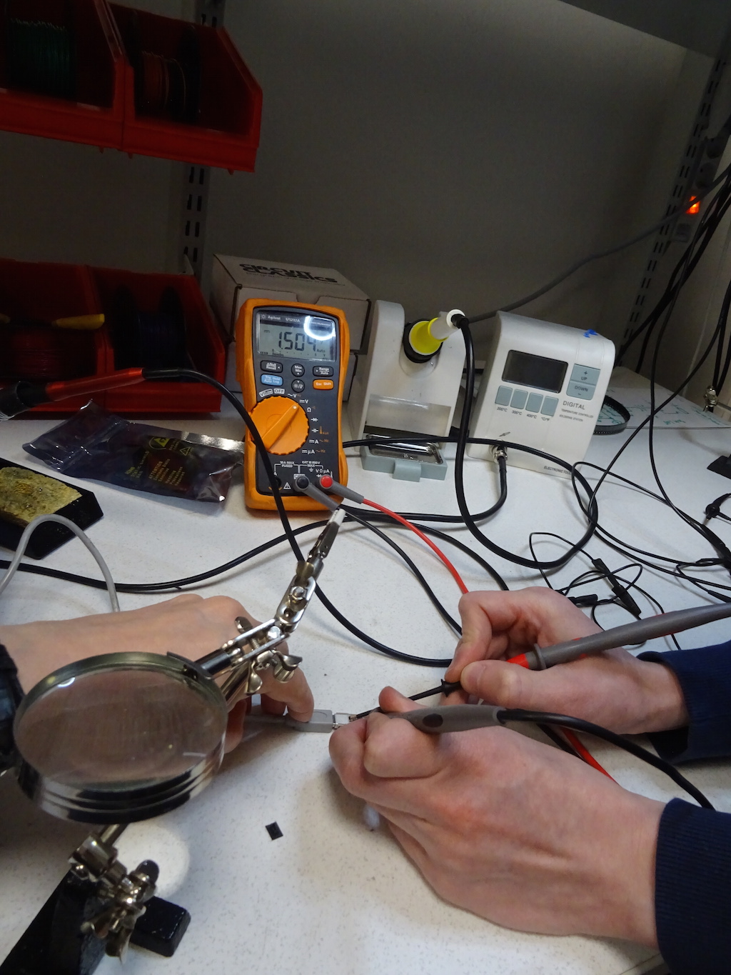 And then on soldering. I have to check the solder we have to see if it has flux in it. Still, a couple of people tell me they use extra flux. The flux that is here is old and maybe the lab needs to get new stuff, someone else says.