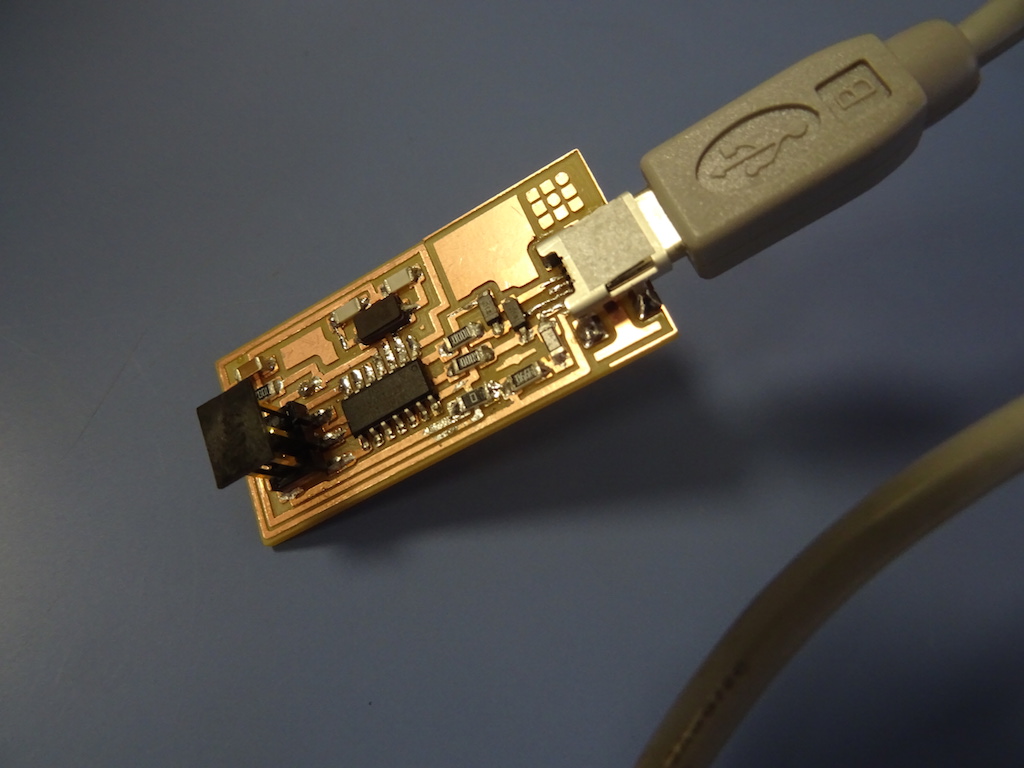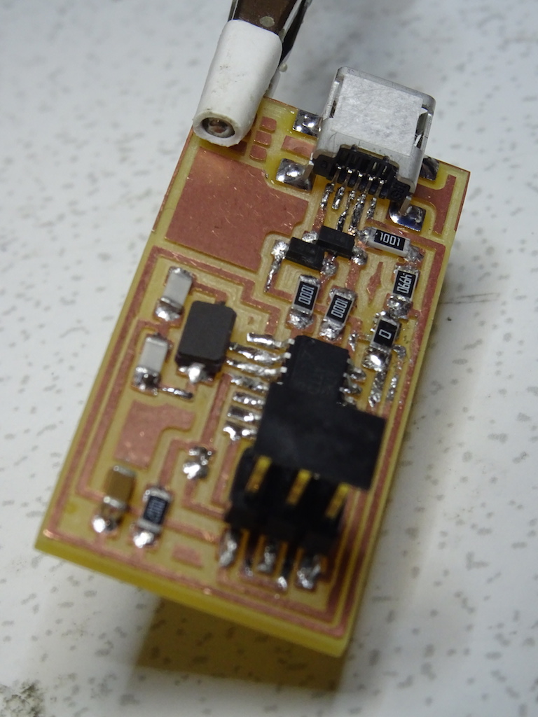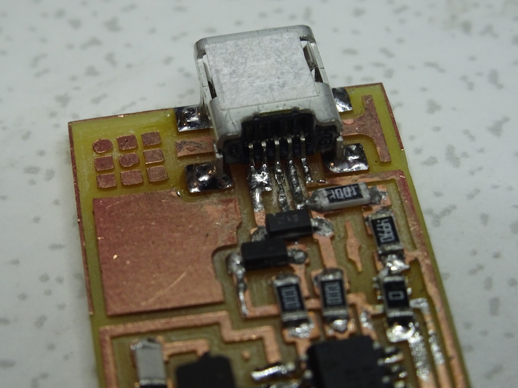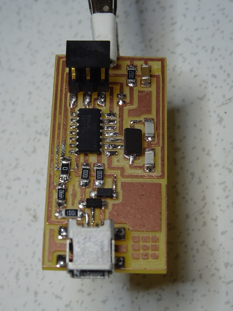 I drop solder on it and then plug it into my laptop. And MIRACLE! The FabISP appears!