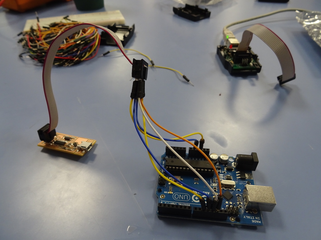 It is still not recognized by the computer. Niklas takes an Arduino UNO to try. We find Massimo's tutorial and this Arduino tutorial and wire it up according to Massimo's instructions.