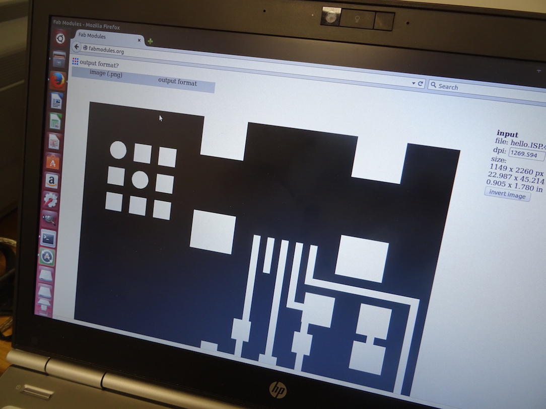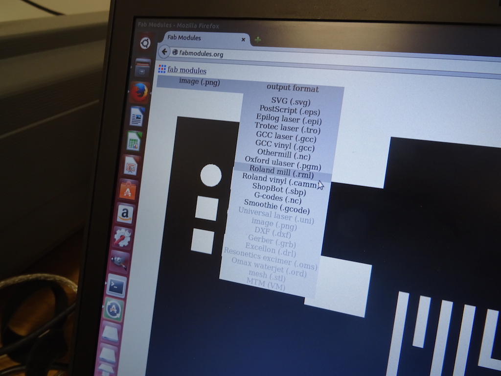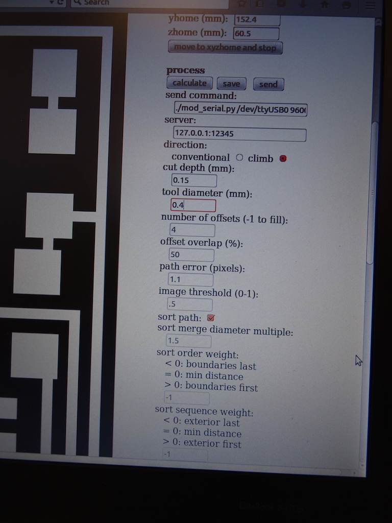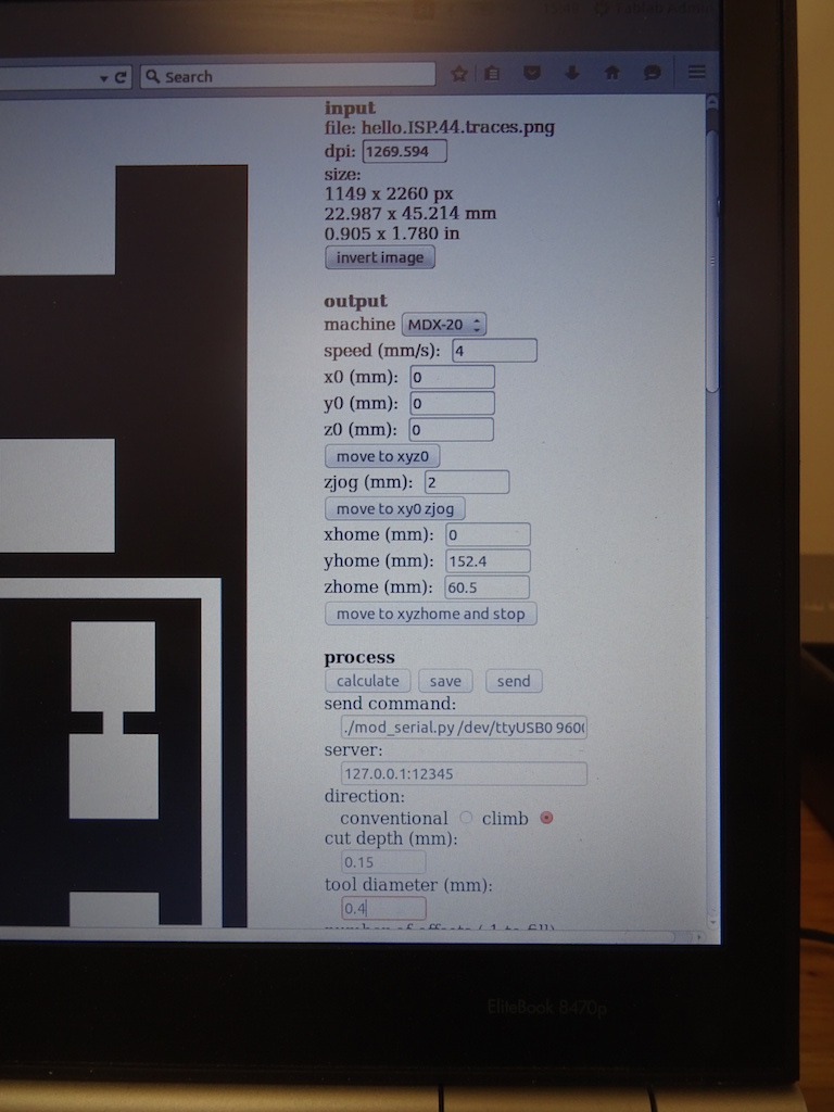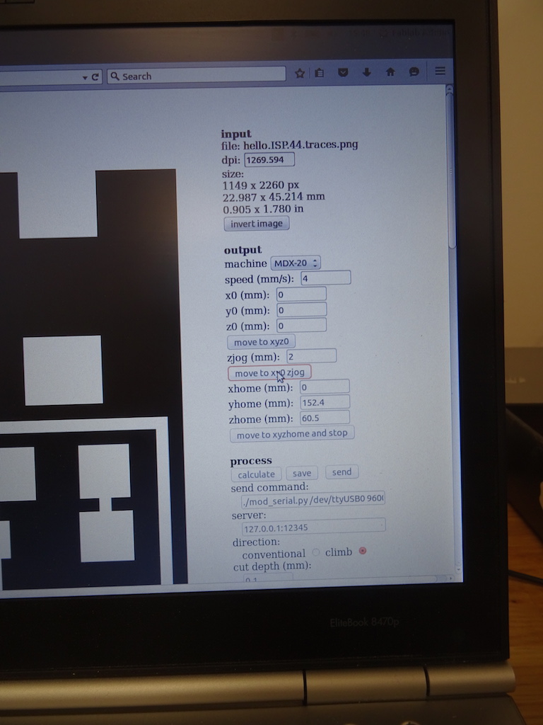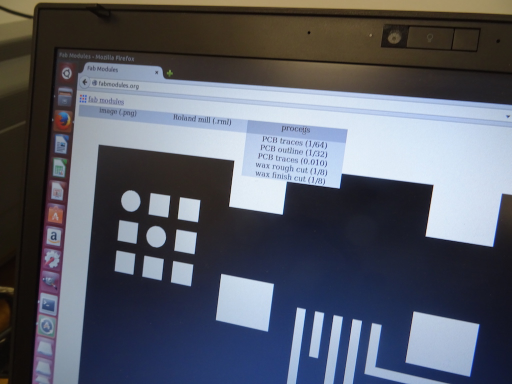 -choose which image, choose which output format (Roland mill), choose which process (PCB traces (1/64)).
