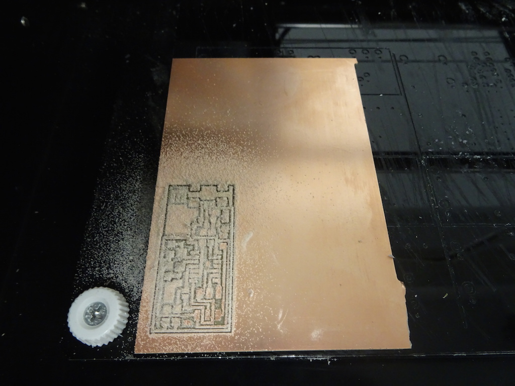I then have two tries to mill another board. The first time there are two of us who spend almost the whole afternoon trying to do it. Then it is because we cannot connect to the server but we cannot figure out what to do or why we can't. Finally someone comes in who knows the Modela and he does some things in the Terminal. Then it works - but the timing is bad because the lab is closing.