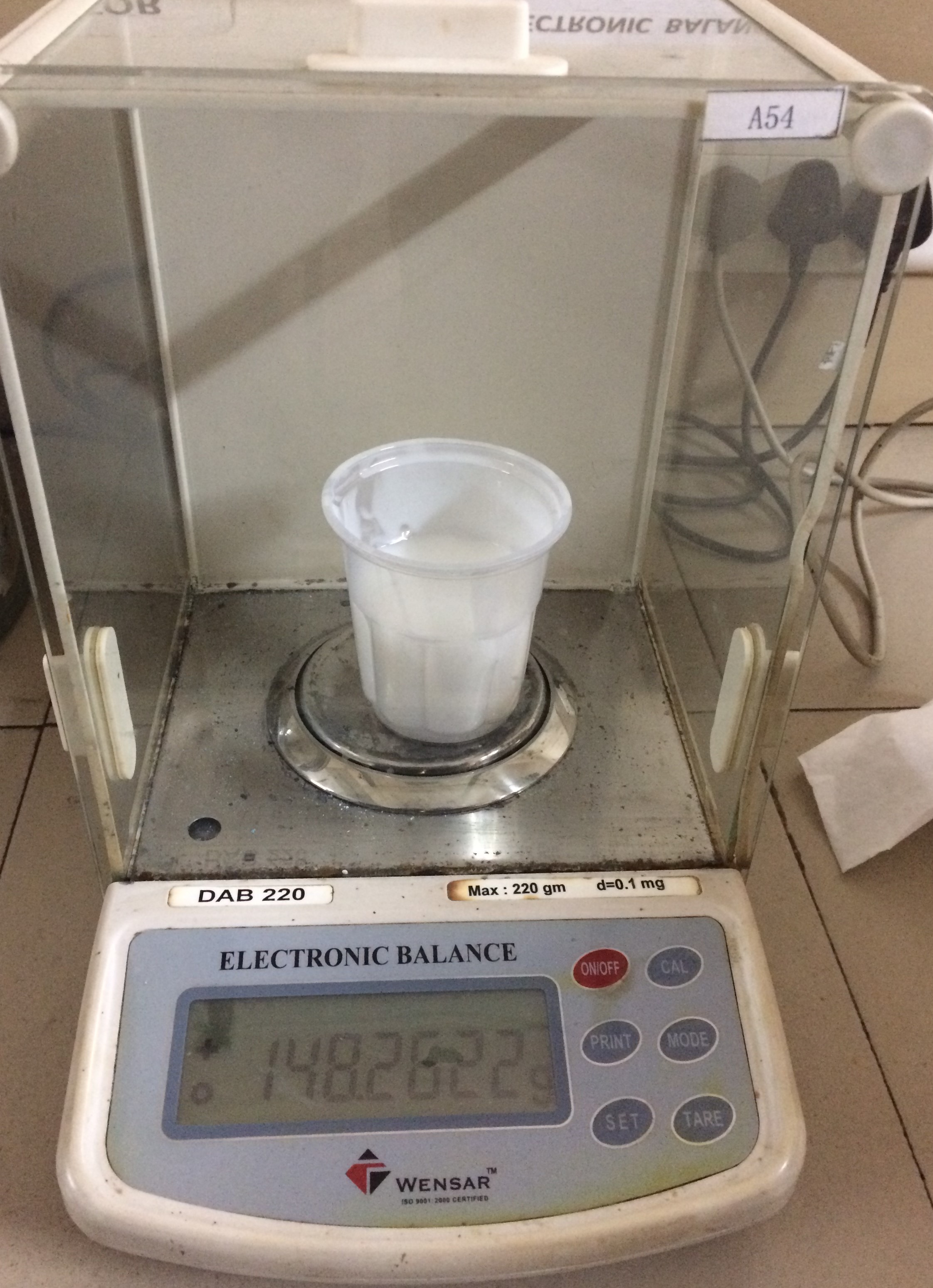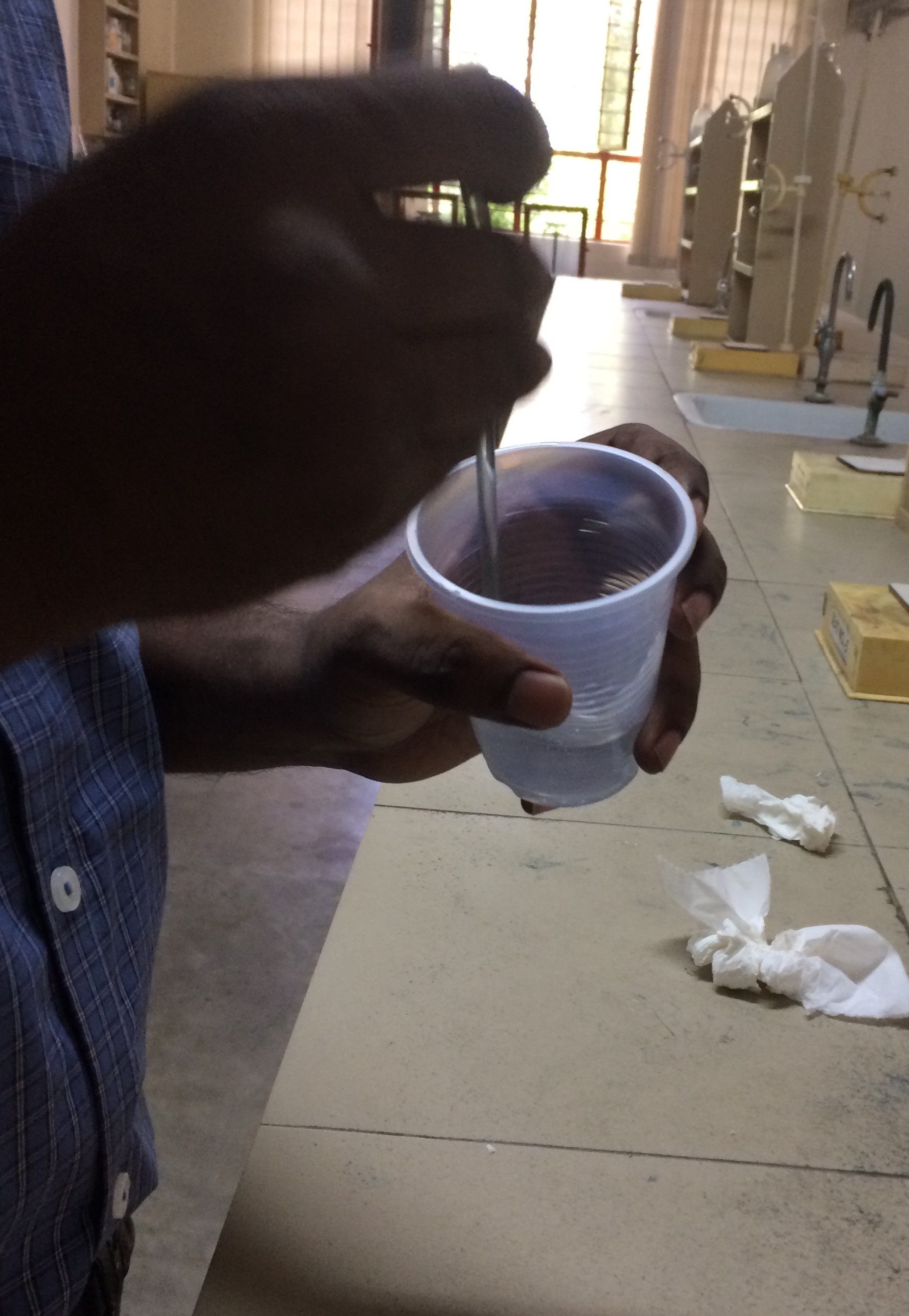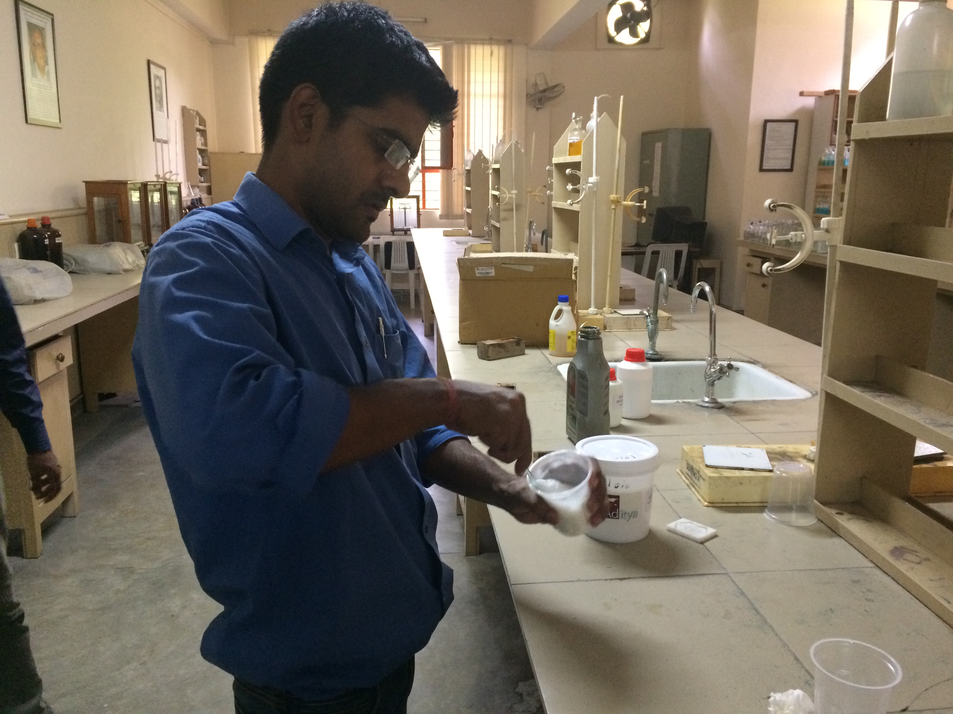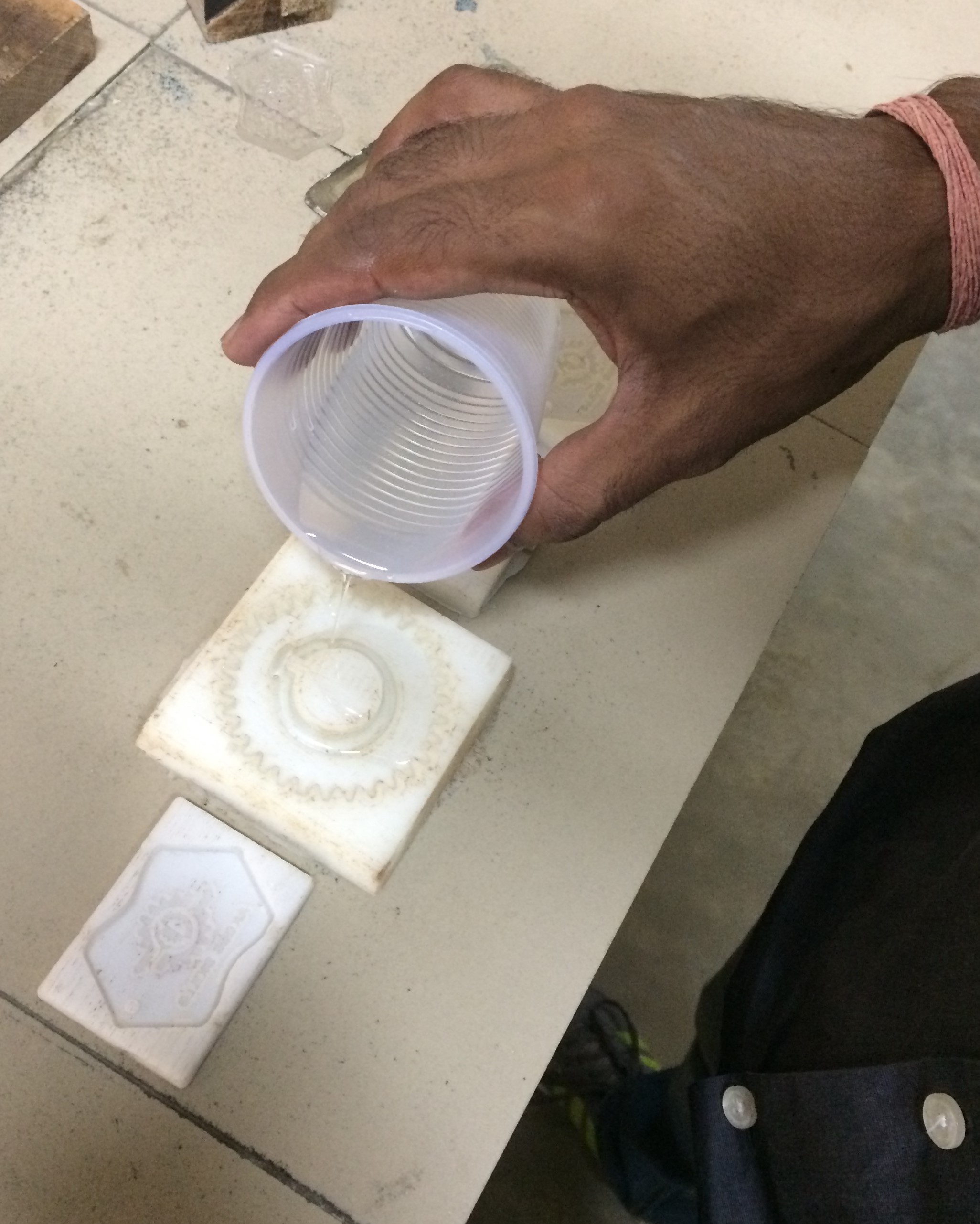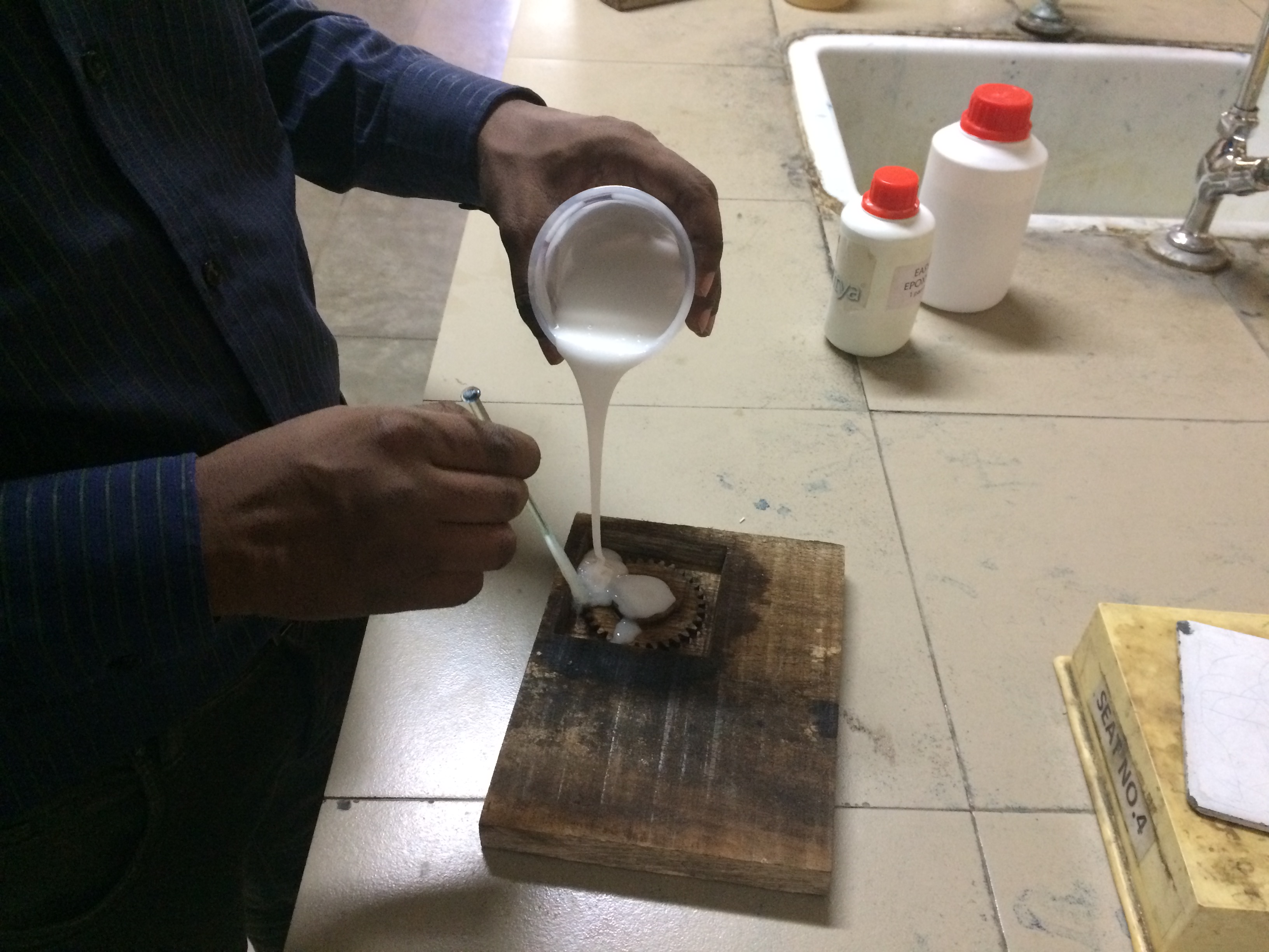 After creating mould, to create the final casted piece, it is being filled with Epoxy resin (Part A) and binder (Part B) in the ratio of 1:0.5, i.e. 37.30 gms of Epoxy is taken and 18.65 gms of binder. The mixture is mixed properly and poured into the mould, theirafter it is left for drying for 1 day.