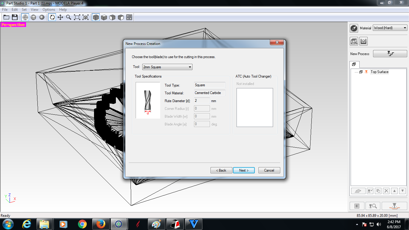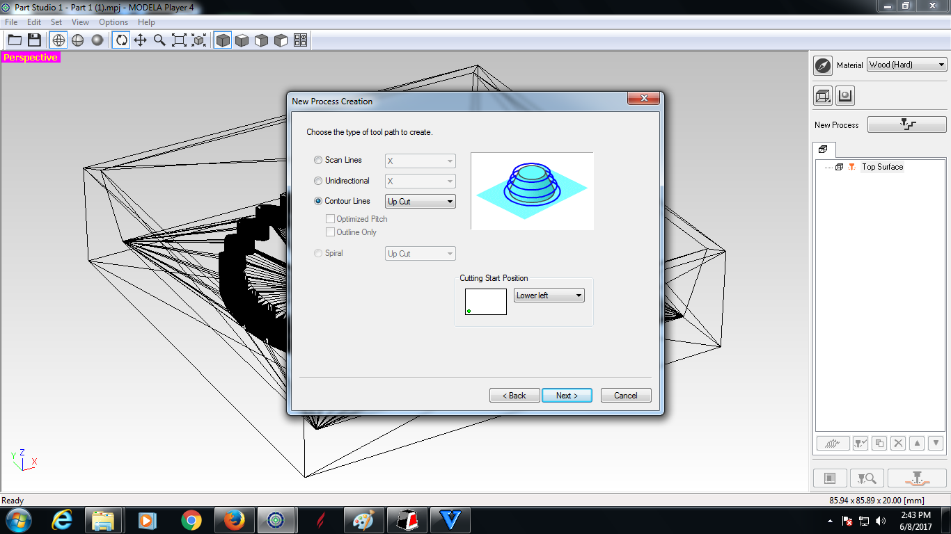 I used MODELA Player 4 for creating tools path which is discussed as follow: