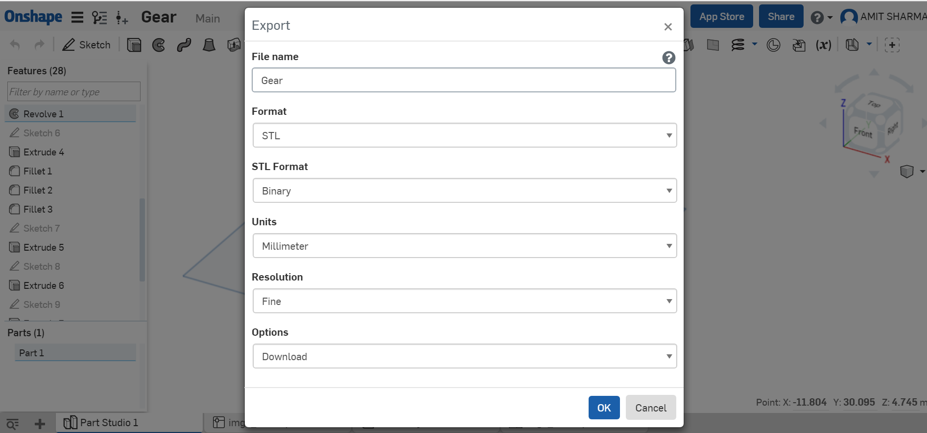 Think of an object, create it and make mould for it. In my case I created a gear, as shown below.