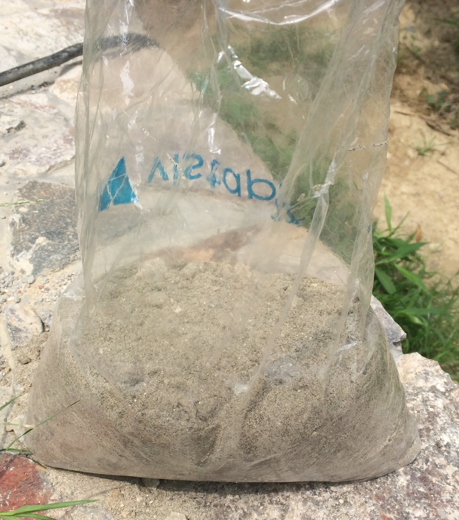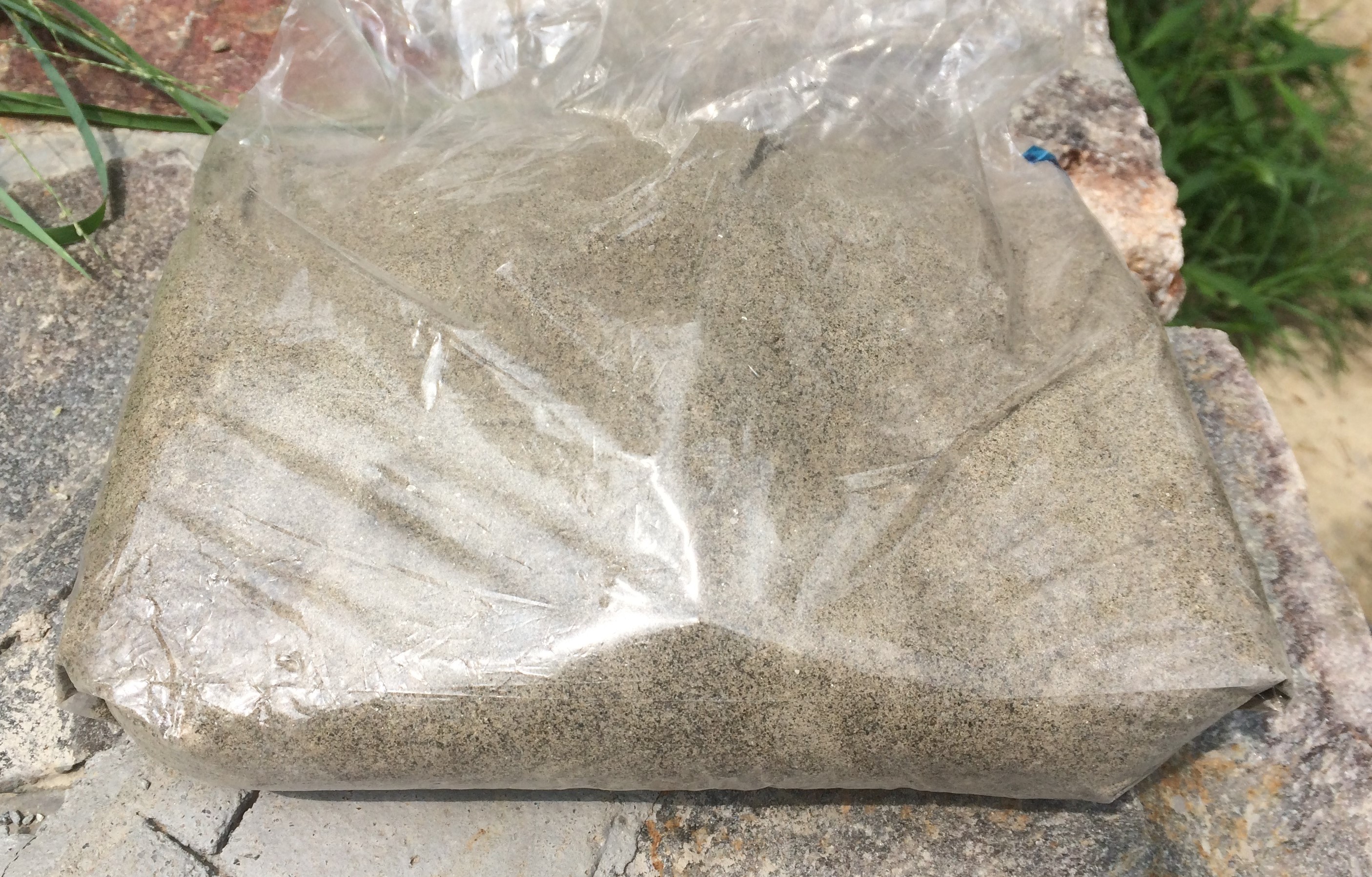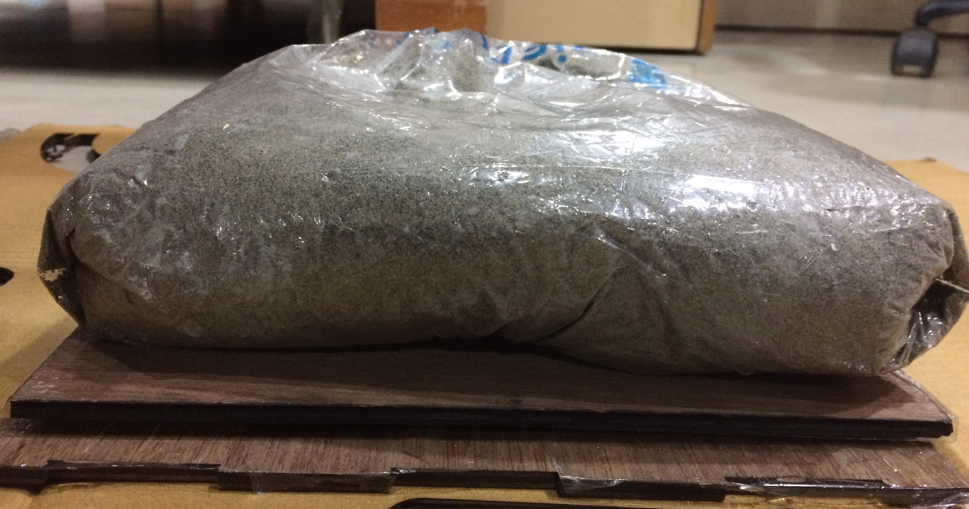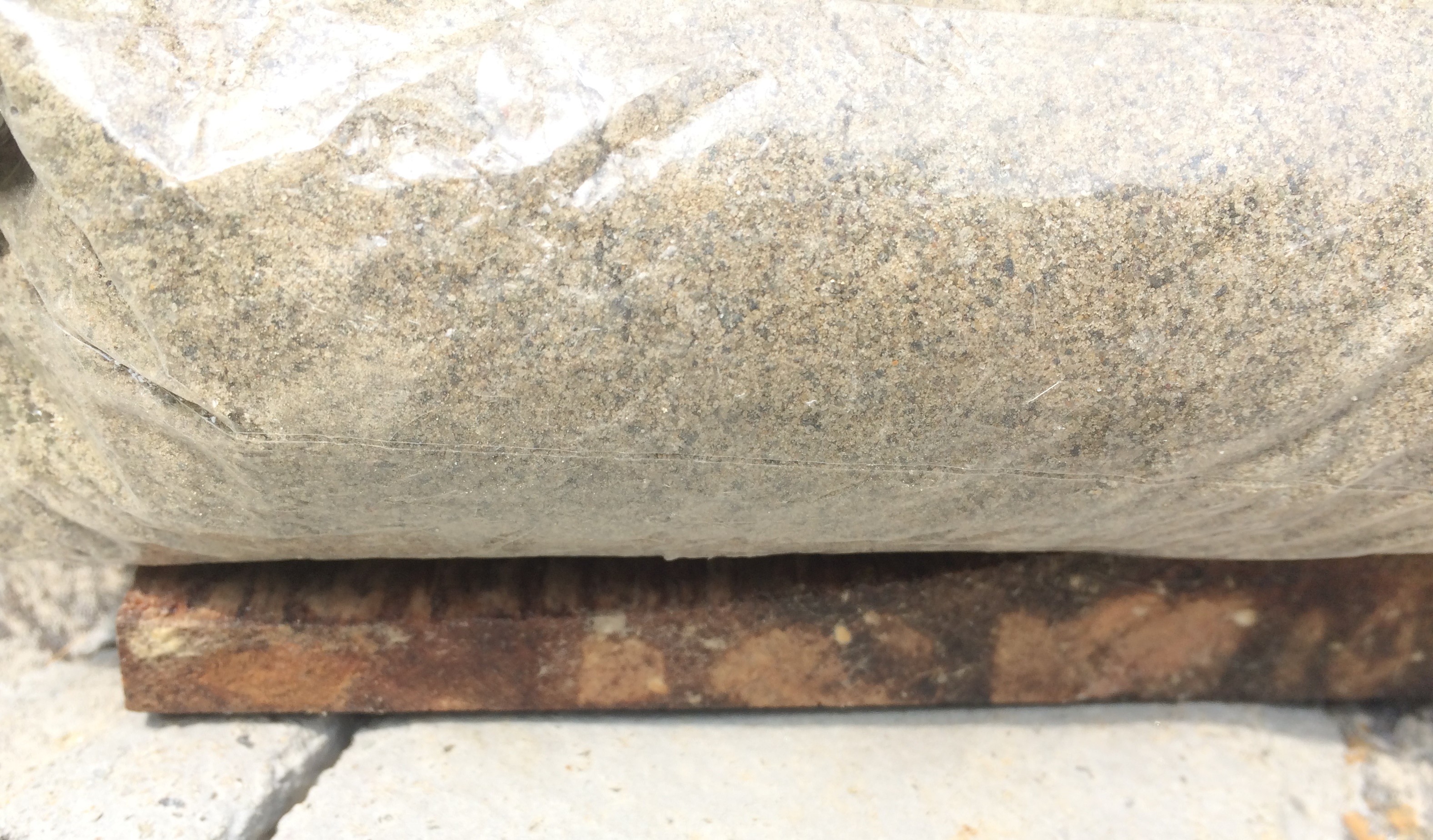 4. Now, for compacting the mixture. I layed out a big plastic bag with little sand in it over the composite. This way the weight of the sand compresses the composite allowing extra resin to seep out, as shown below.