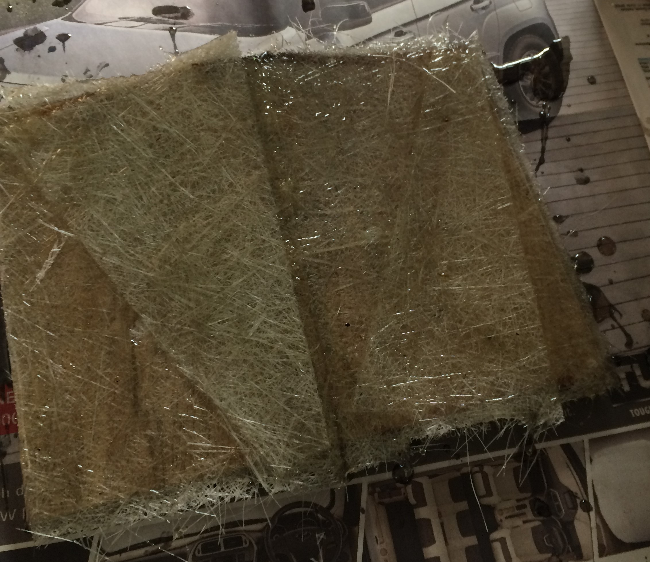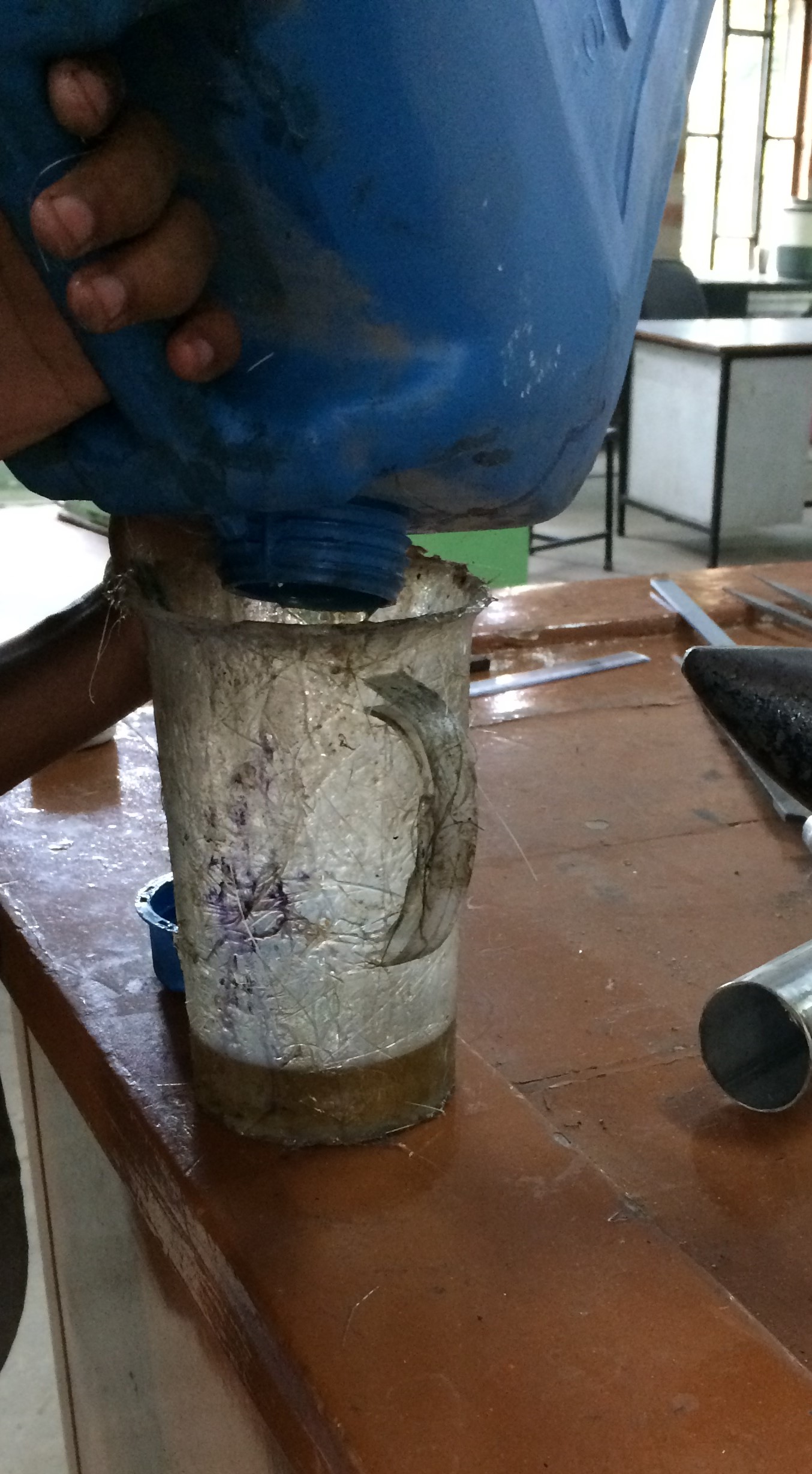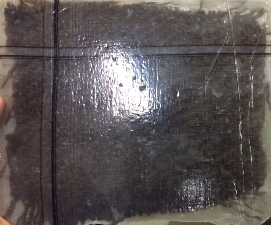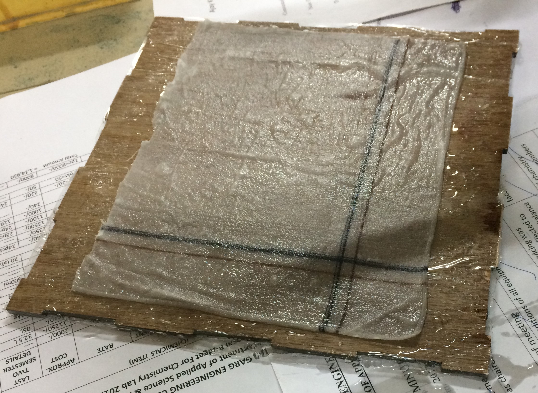After creating the mixture, First a layer of glass fiber is put and prepared mixture is pasted over it. This process can be repeated after putting the next layer of the flass fibre. I created 2 layer composite.