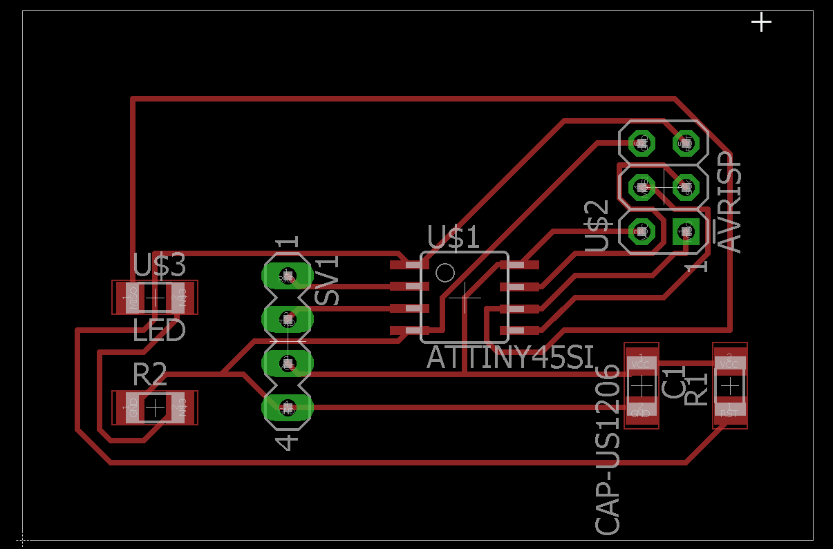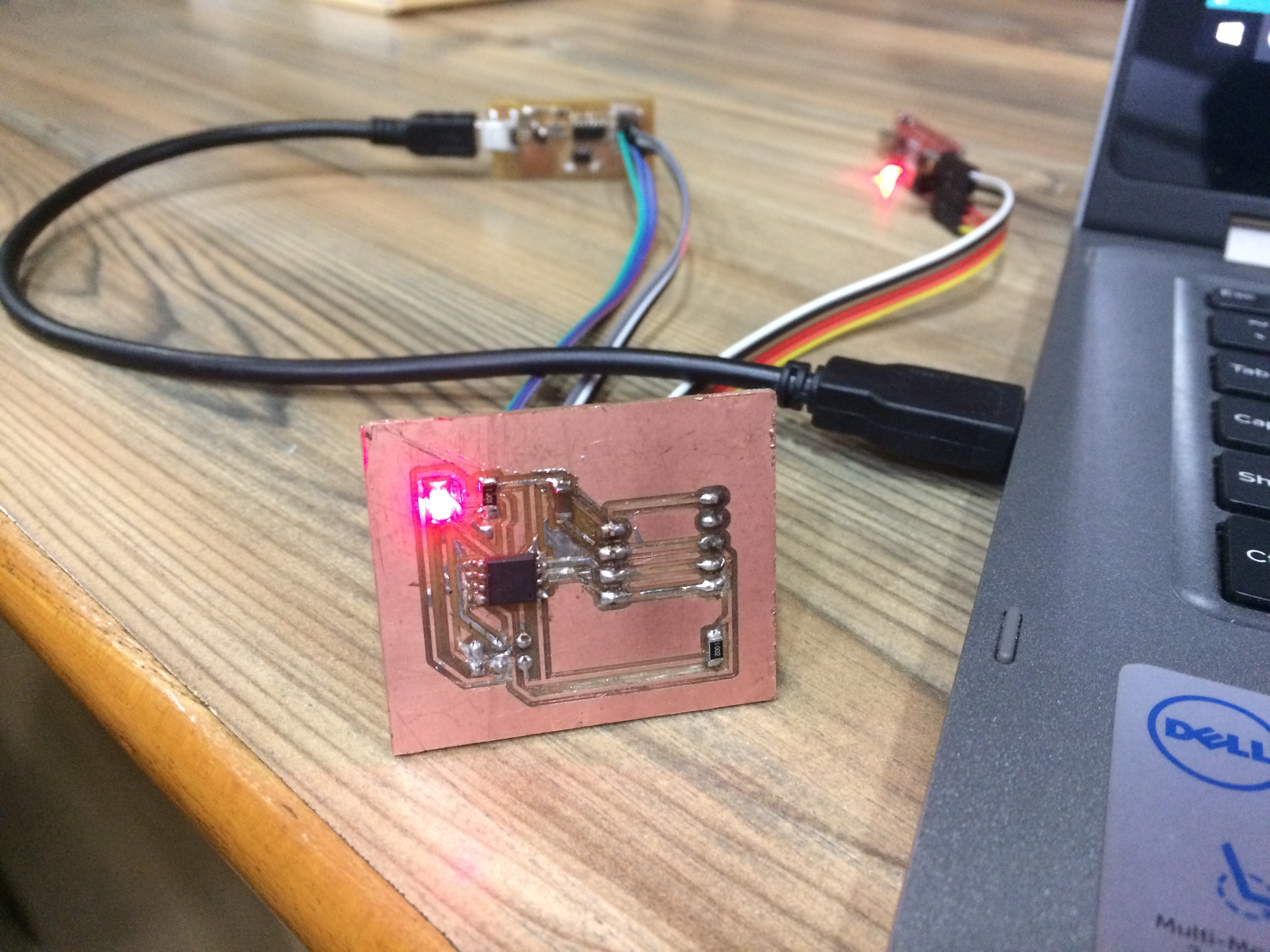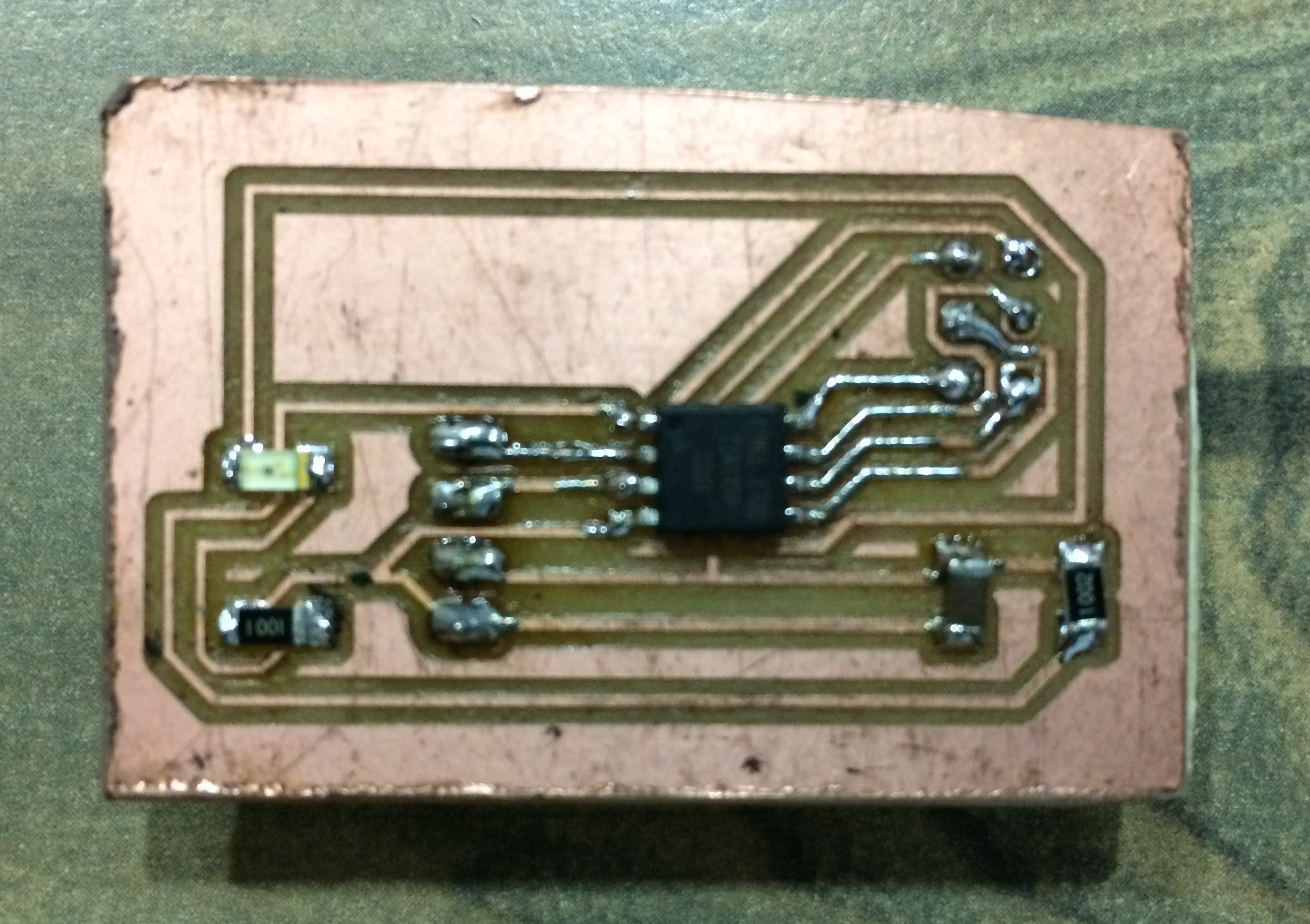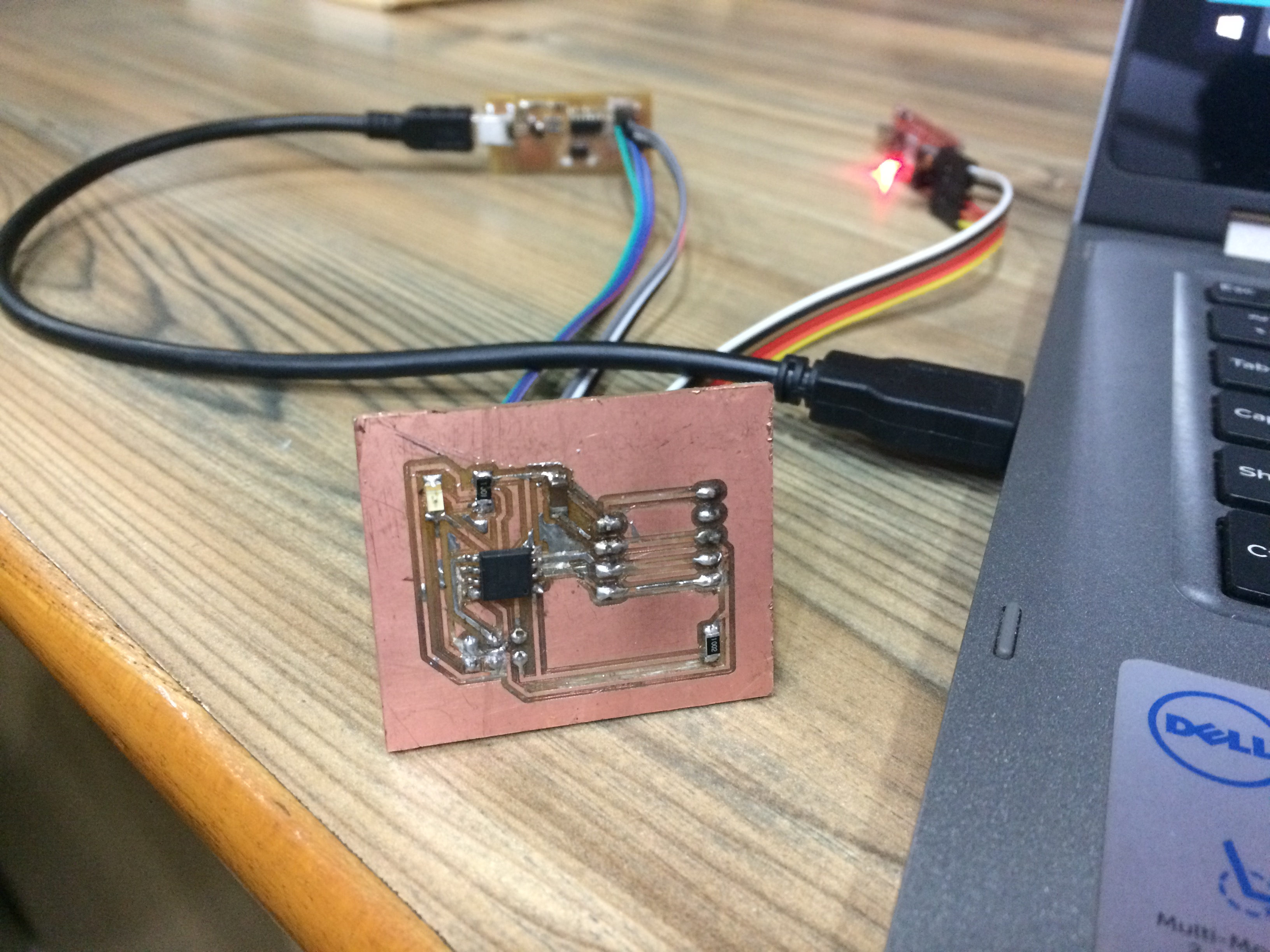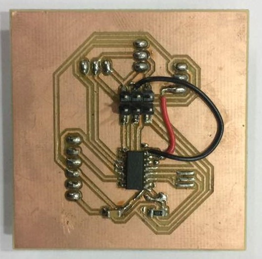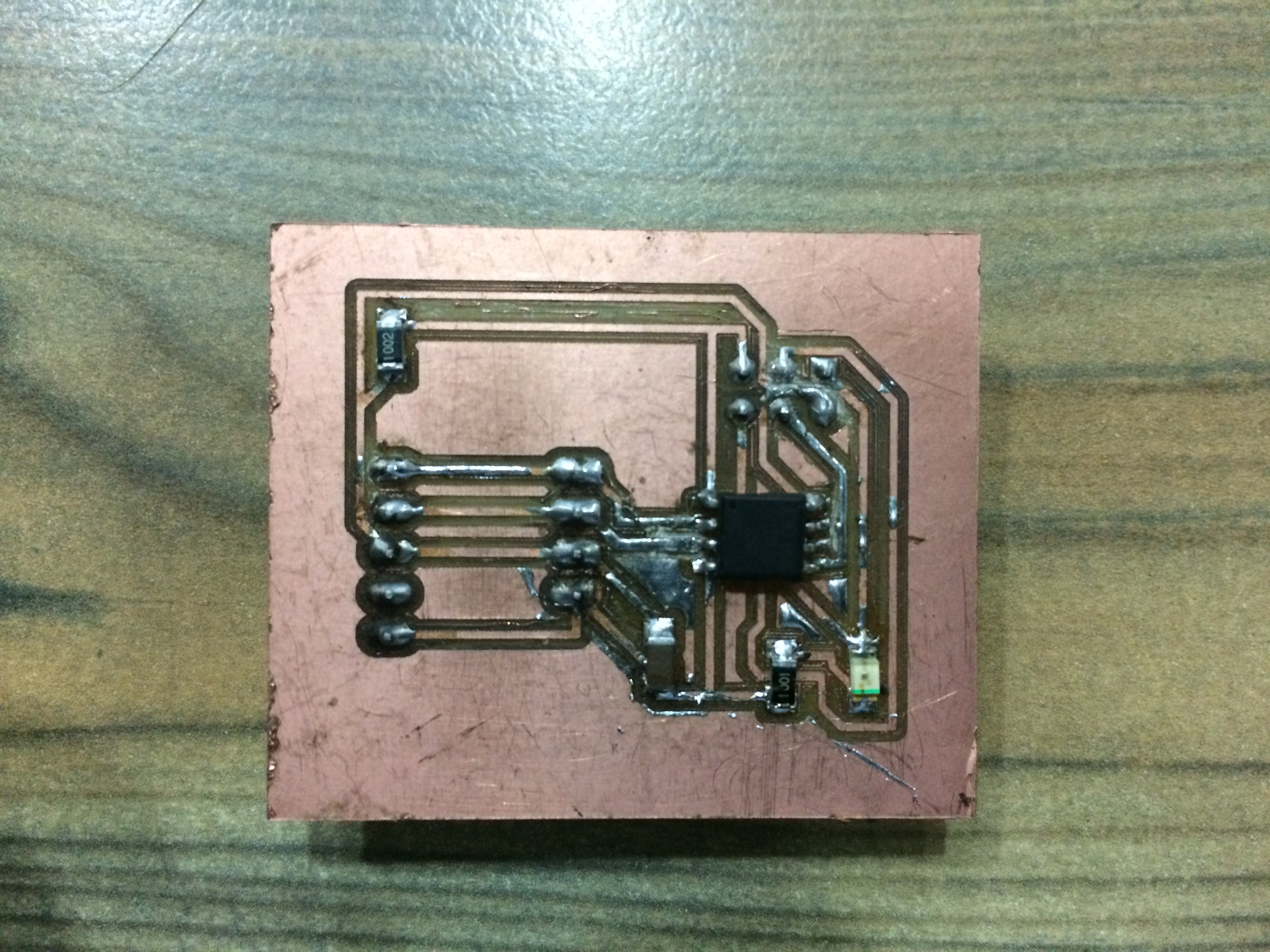 Using Roland SRM 20 machine, board was milled in the similar fashion as done in previous assignments. Also, the cutting parameters for Traces and Outlines are kept same as in Input devices assignment board.