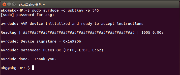 After stuffing the board with all the required components, I checked the fuses by the linux command as shown below.