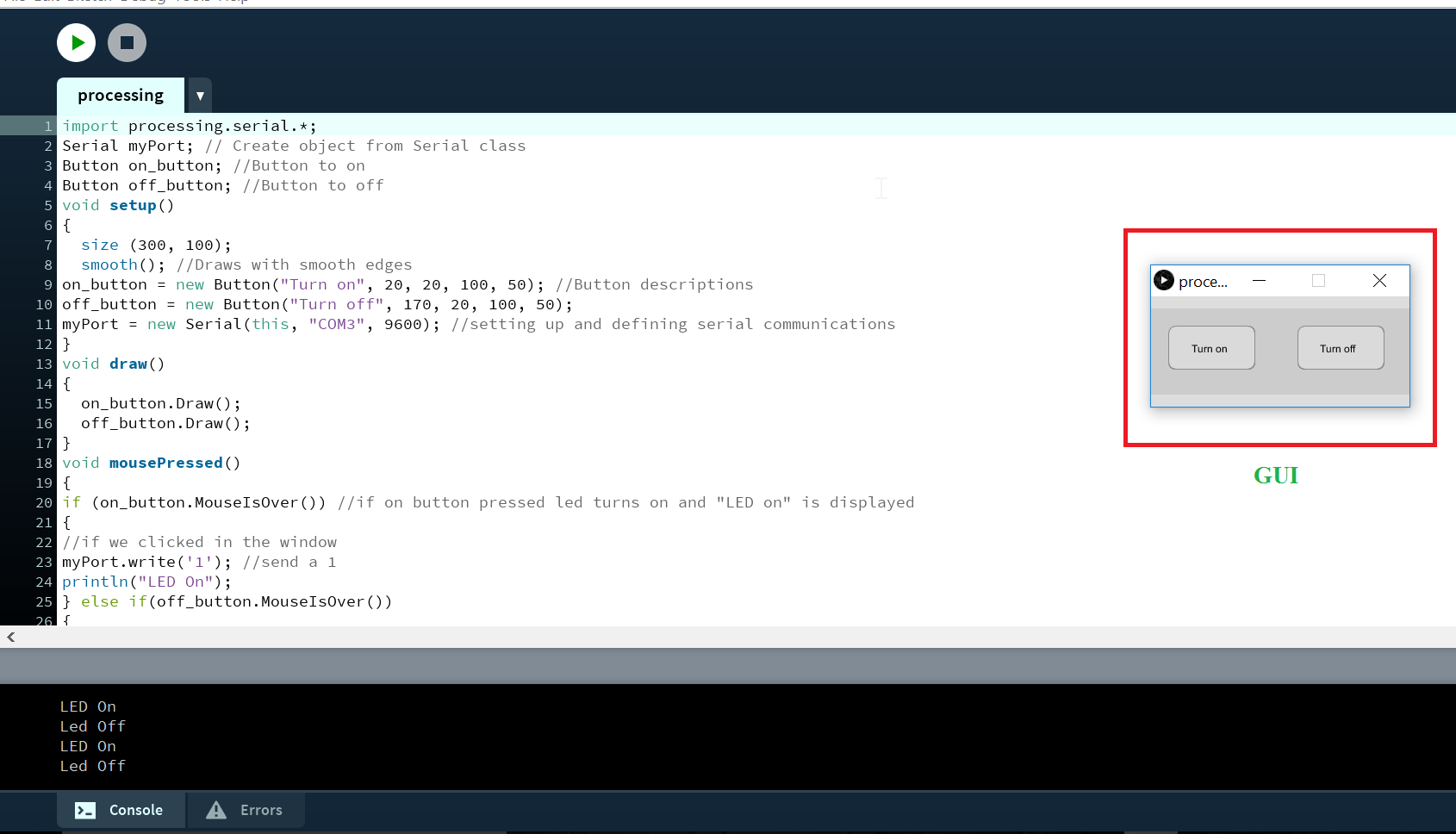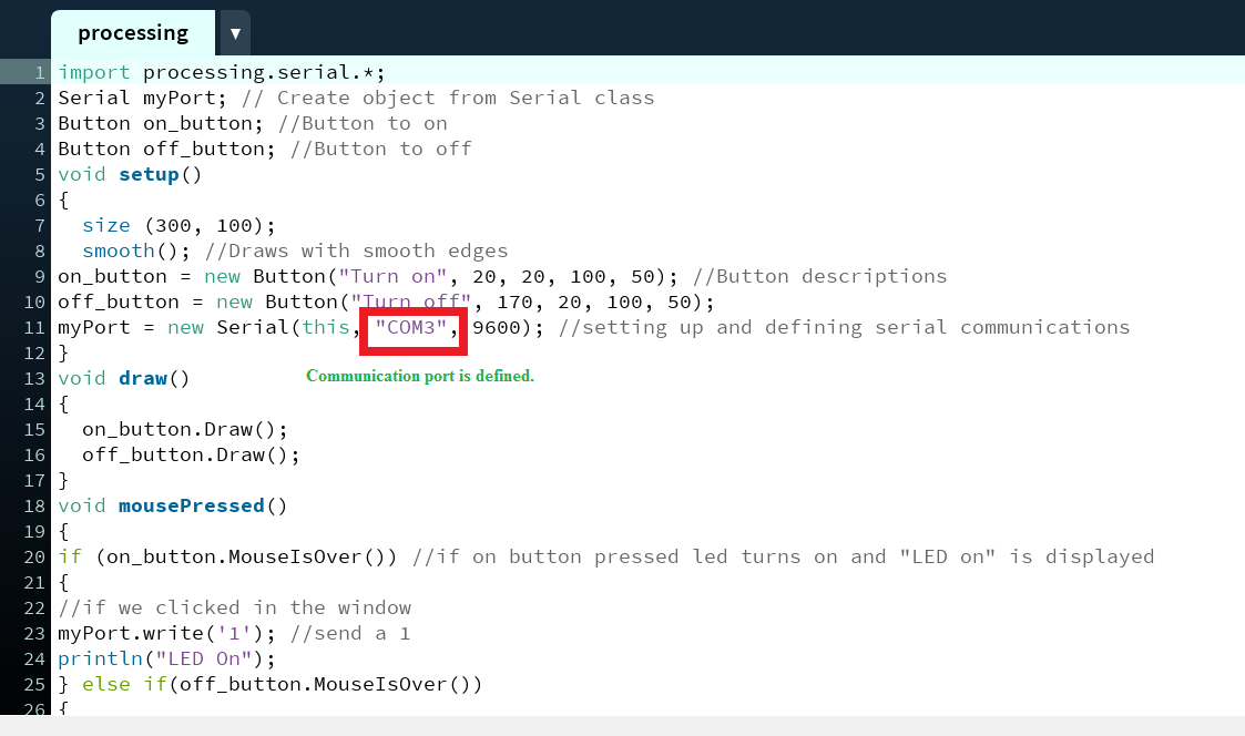 - Import library for serial communication by typing "import serial".