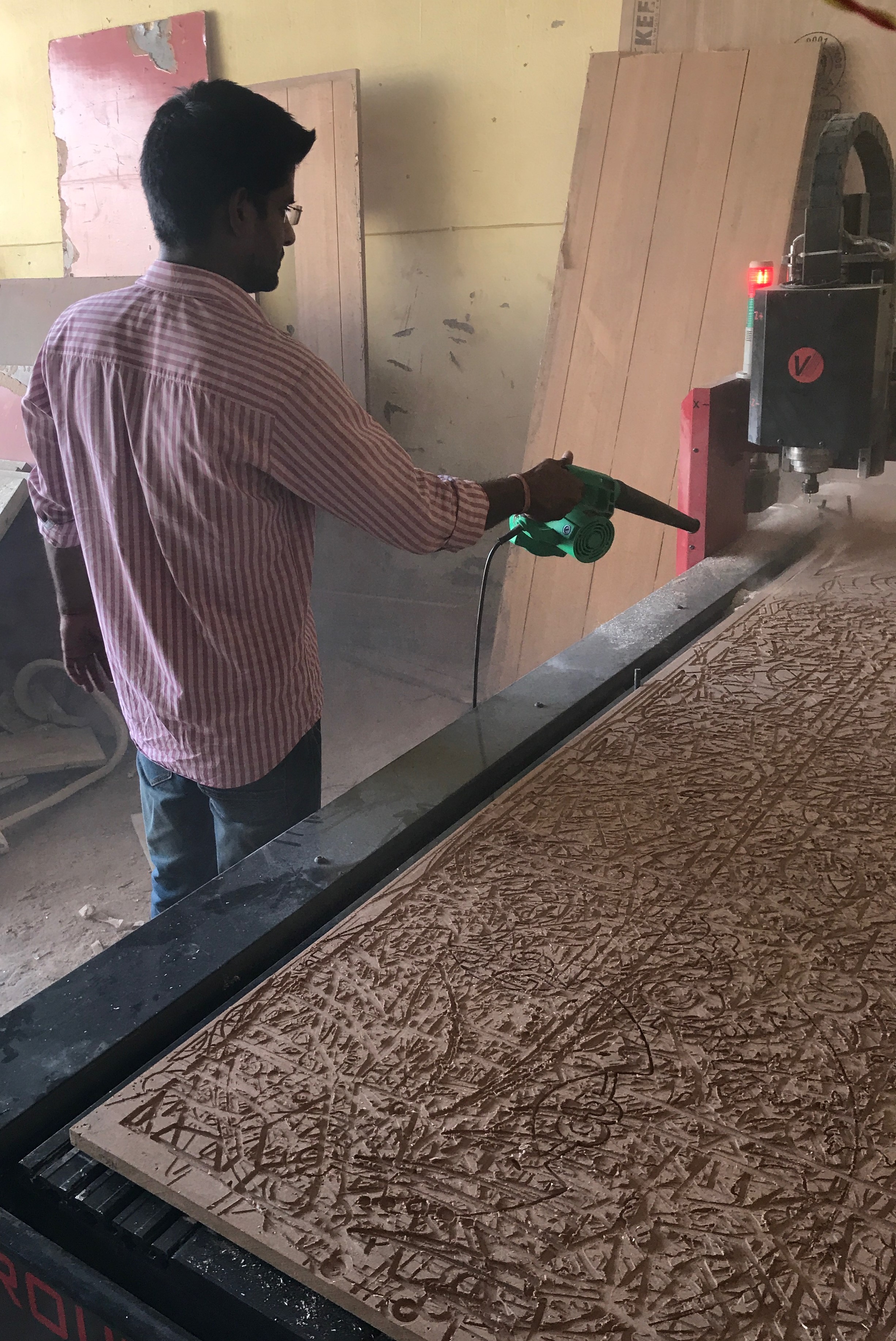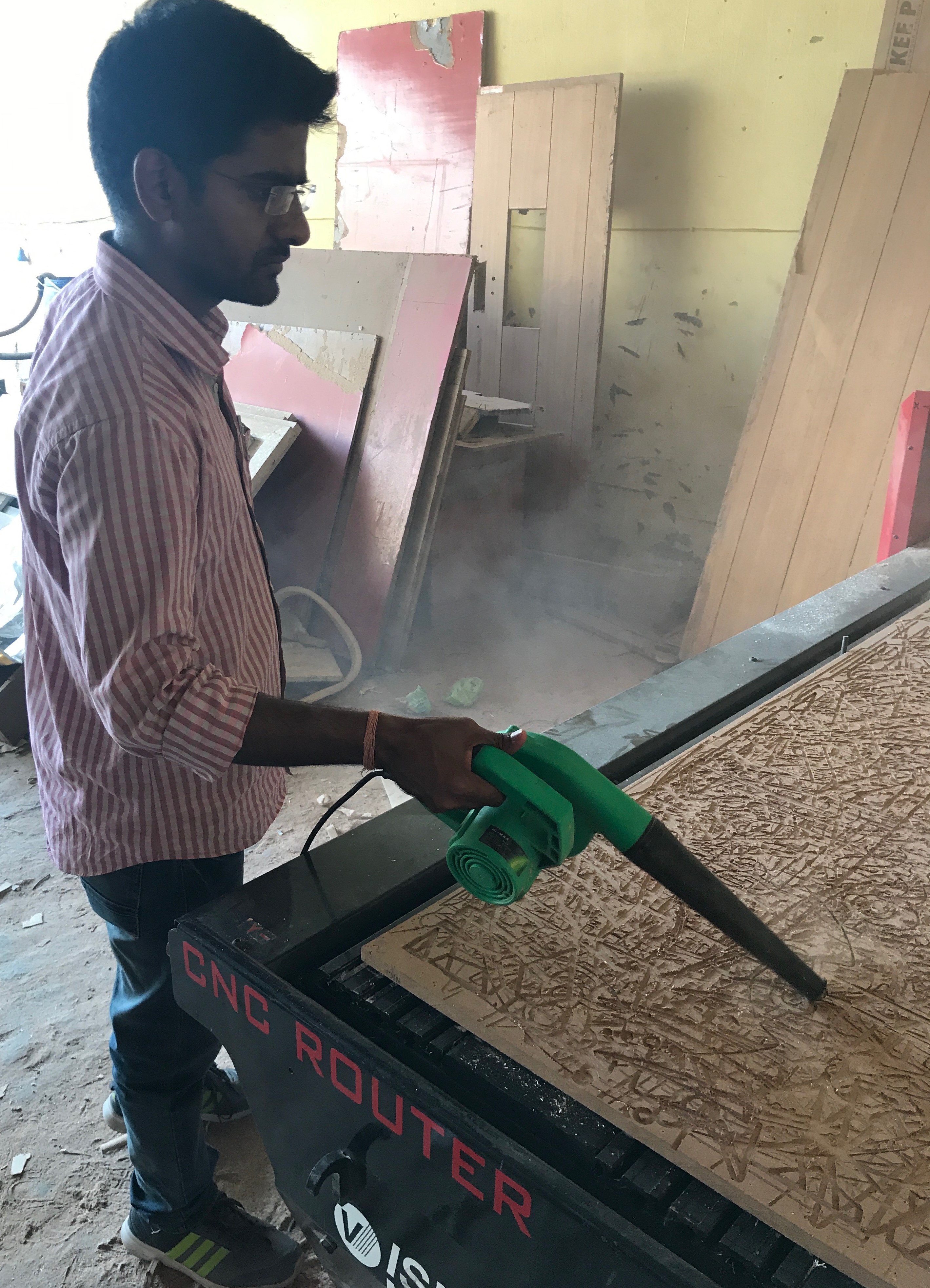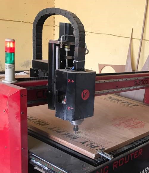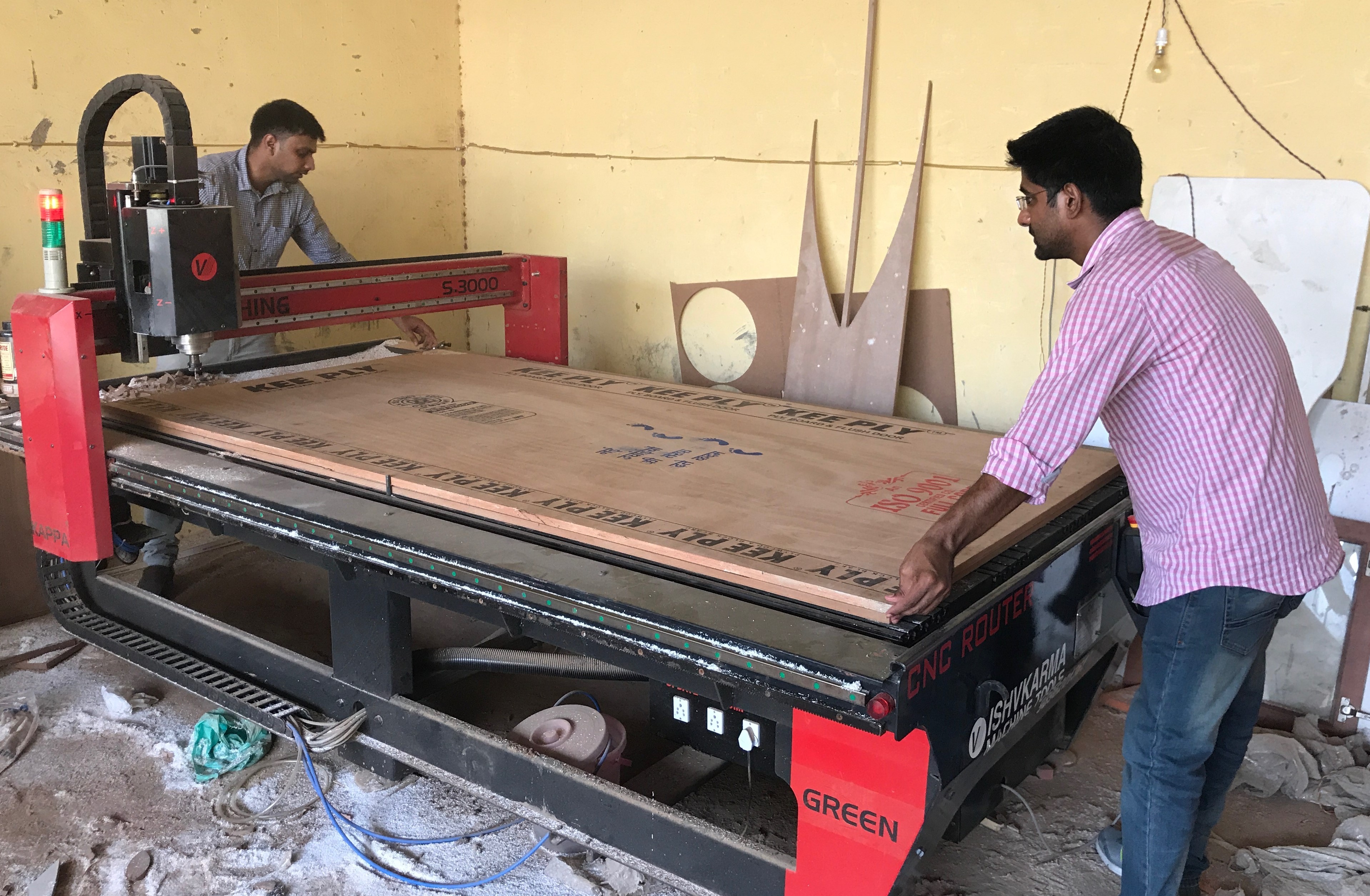 First we cleaned the surface of the Wood Router and Mounted 17mm; 8x4 plywood on the bed of the machine.