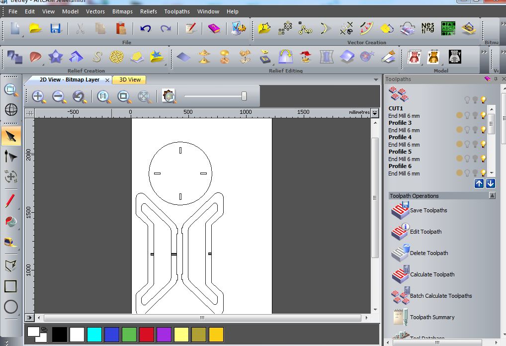 I scaled up the above prepared model approximately by 10 times, but need to work on the slots on the table top and projections on the legs because, this thickness of the ply used is 17mm whereas, initially it was 5mm. The .DXF file developed is used in ArtCAM for creating the toolpath as discussed below. Mine and my fellow companion Apoorv's design files was cut simuntaniously in the same board with the same cutting parameters.