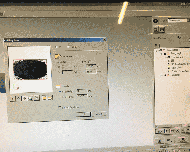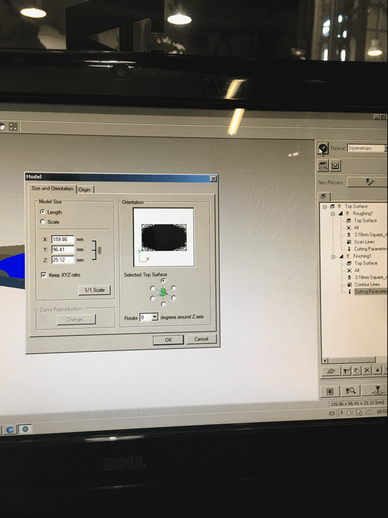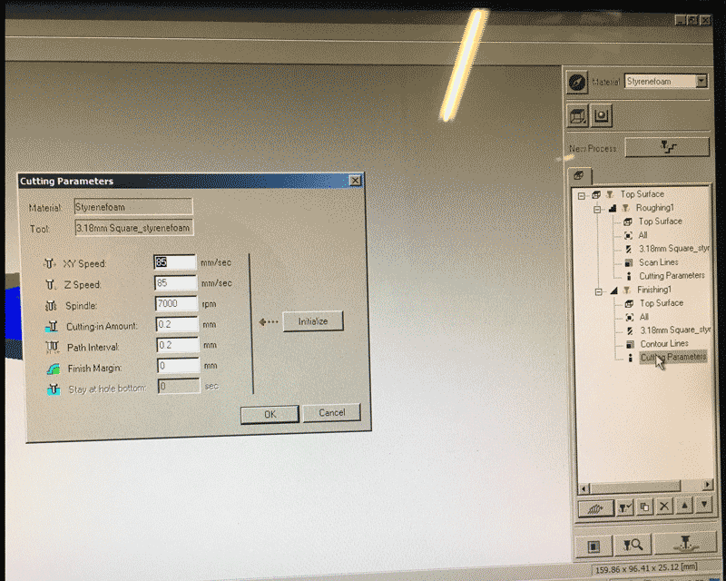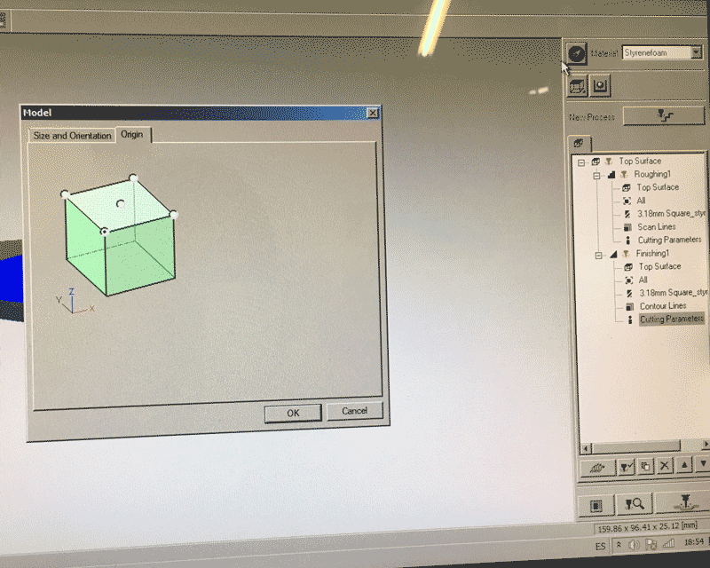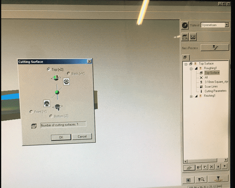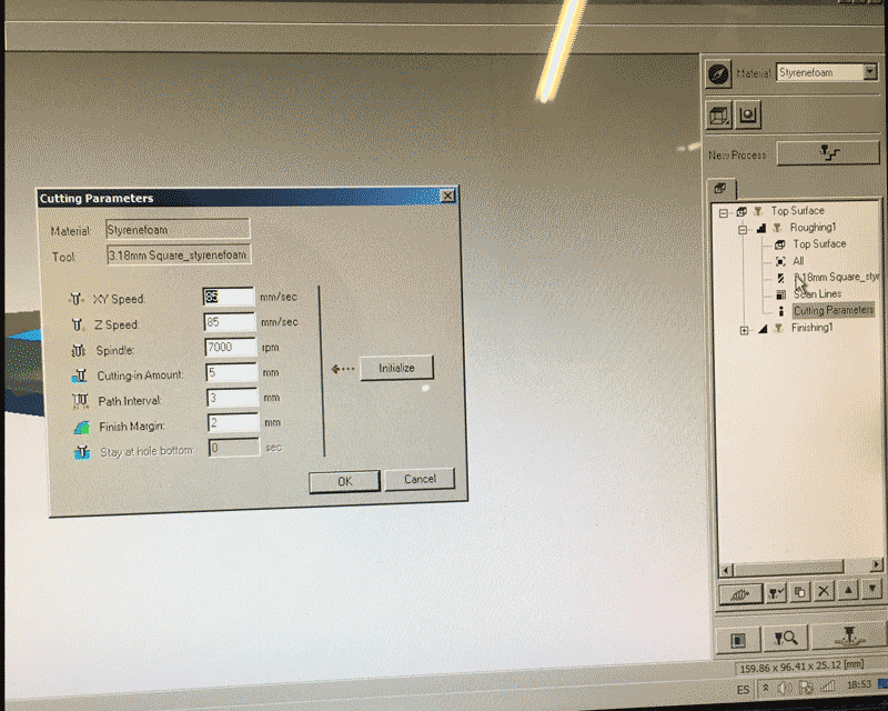 Before pressing the button next to the 'New process' for creating two milling process, I have to choose the material first and this time I used 'Styrenefoam'. The first one is roughing and the second one is finishing.