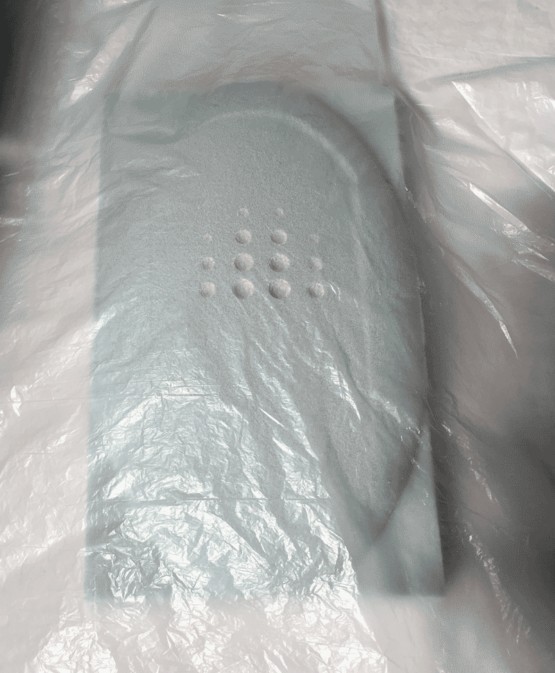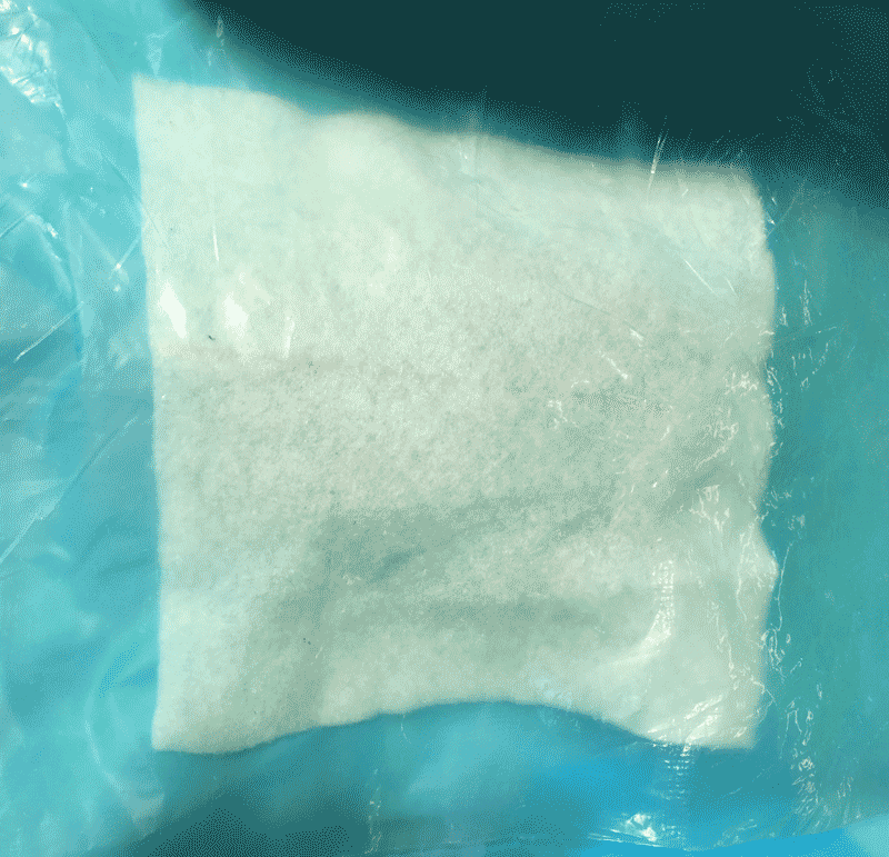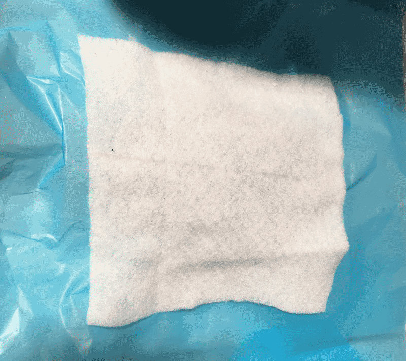 Spread the solution on the cloth. Since there are three layers of the cloth, spread each layer evenly.