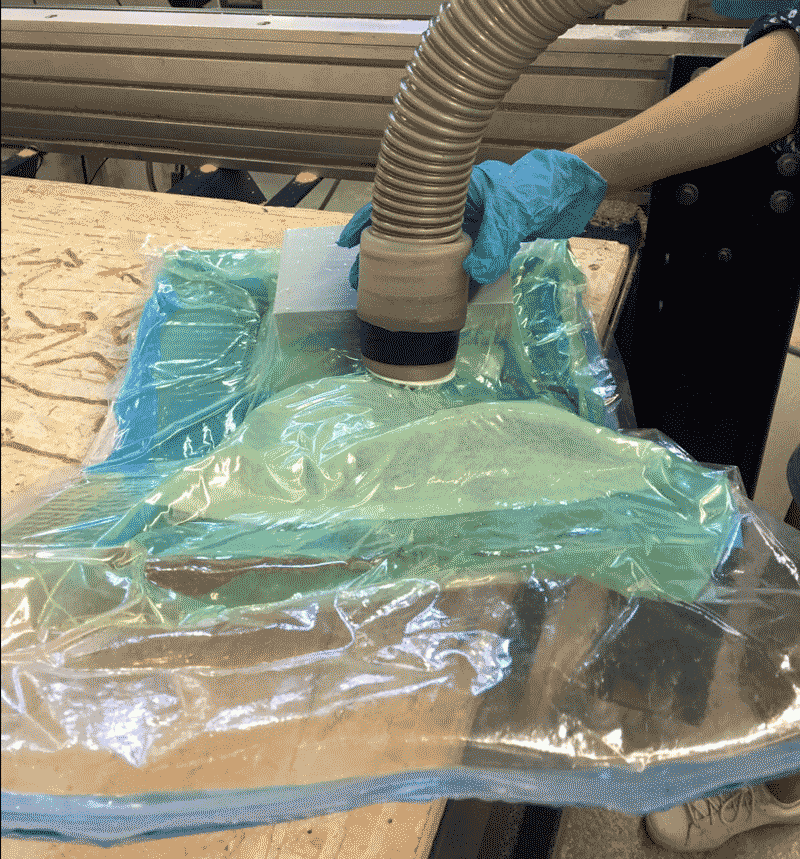 Finally, put the 'top' mold on top of all the layers and put everything inside the vaccum bag to lock it up.