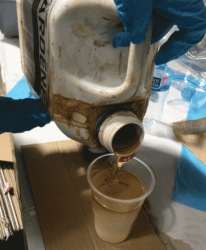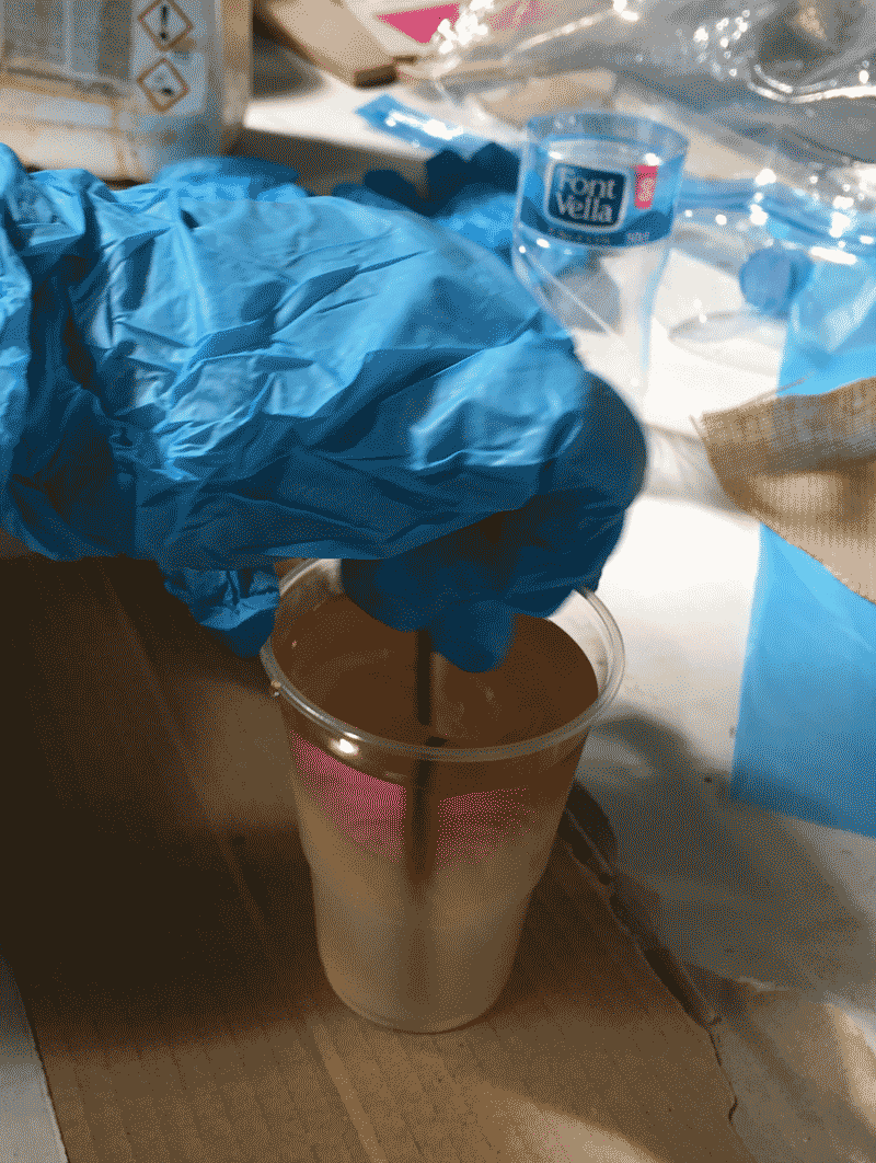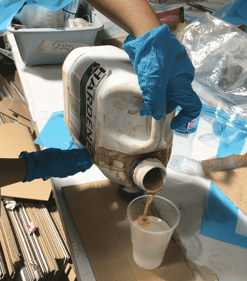 Prepare the entropy resins, which replaces petro-checmicals with renewable, biobased materials. Before using the chemical, it is important to read the material safety data sheet (MSDS) and Technical Data sheet (TDS). After reading the instructions, I know that I will have to mix the chemical as fast as I can before they have reaction to become hot. Pour the Epoxy part A into a cup first, then pour the Hardener afterwards. The ratio is 2 portion of part A for 1 portion of part B.