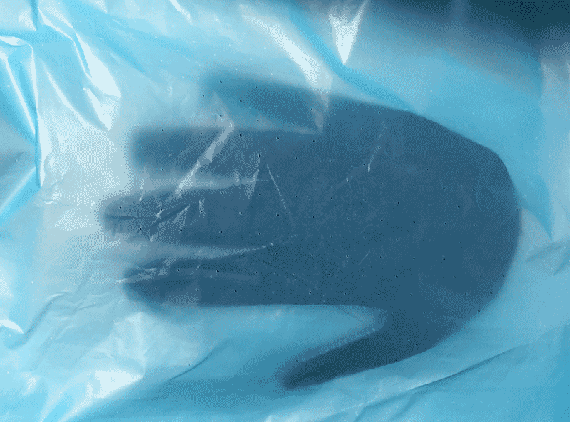 Then, put the hand-shaped cloth.