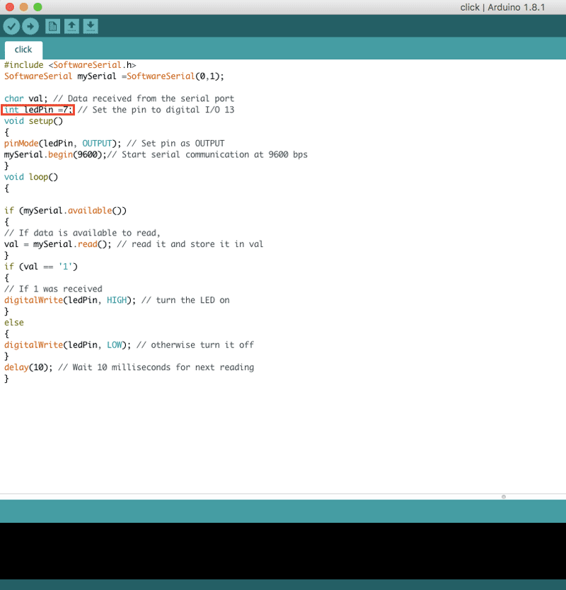 The effect of the code is that when you touch the 'Turn on' button on the screen, the LED will light up. While clicking 'Turn off' button, the LED will turn off.