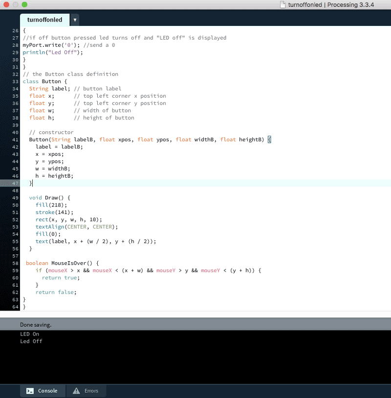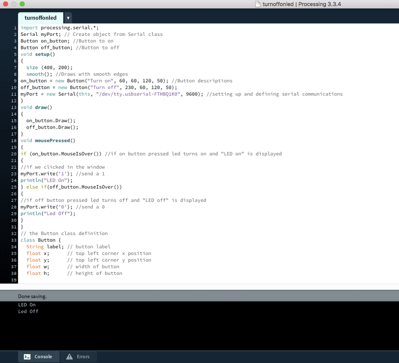 The video below shows the interaction between the button on the screen and the LED.