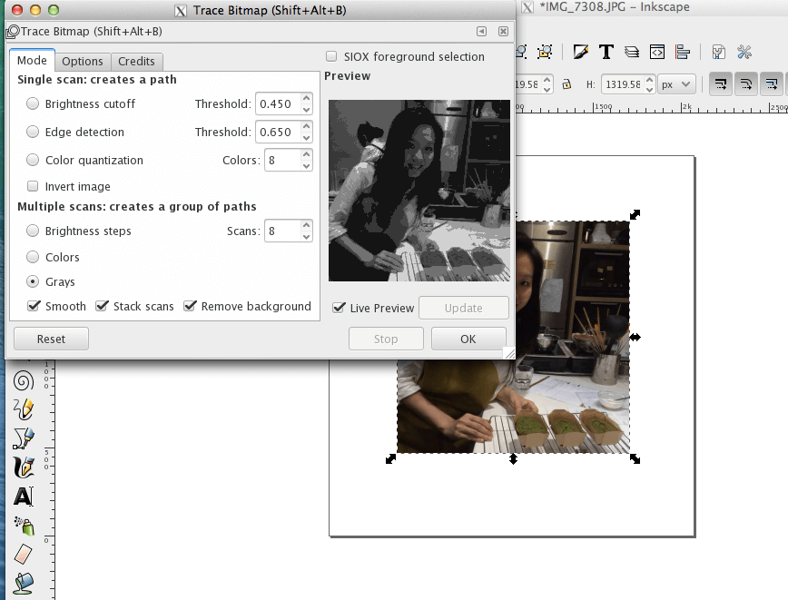 Secondly, I trace bitmap for the picture with the following settings.