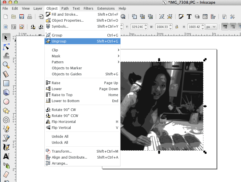 Firstly, I imported my picture in Inkscape.
