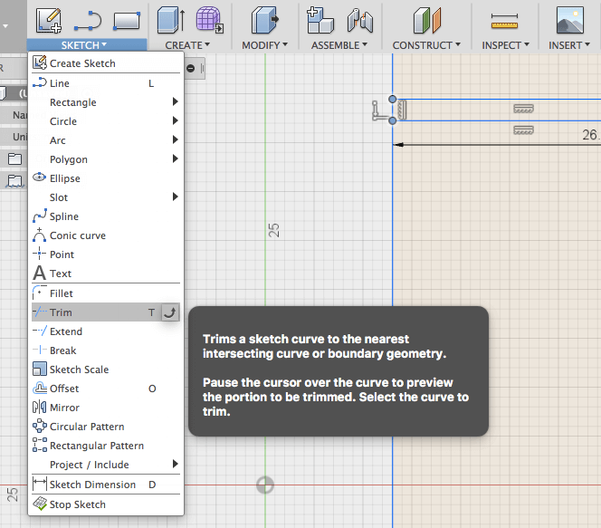 Afterward, use 'Trim' under 'Sketch' for making the hollow space.