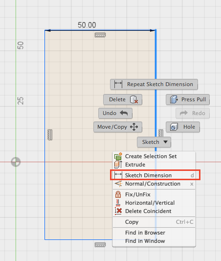 Secondly, I right-click and choose 'Sketch Dimension'.Select the line which you want to specify the measurement.