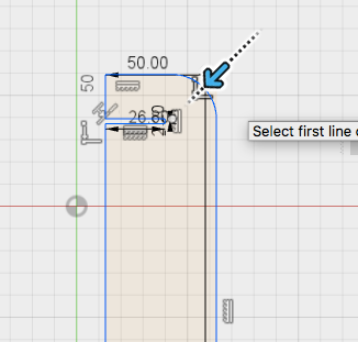 Then, select the angle where you want the fillet.