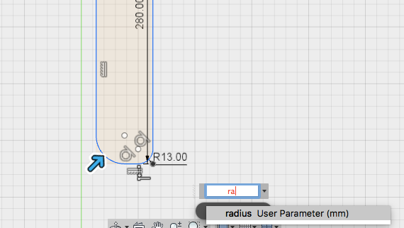Then, the radius will automatically change to 20mm with 'fx' sign.