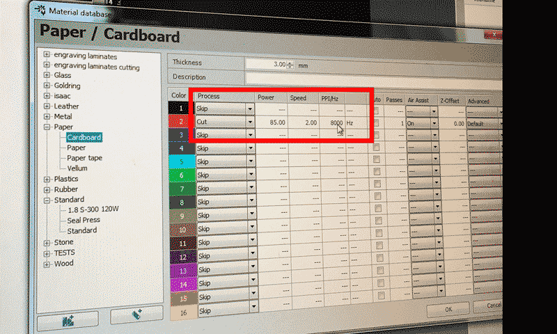 Secondly, Check the cardboard thickness and set the material focus point by adding 0.6 on top of the original thickness.