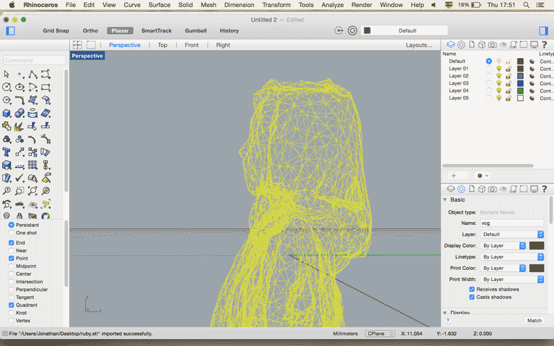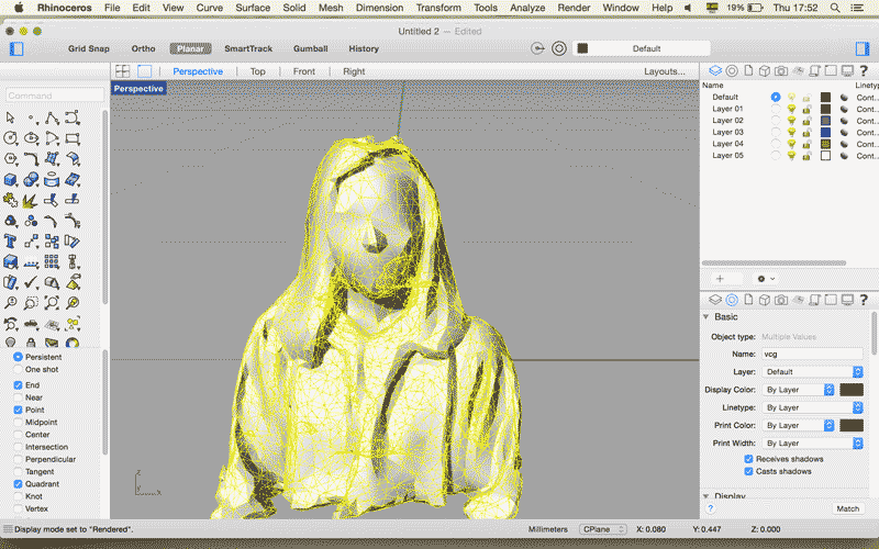 As there are some parts that I want to amend, I try to use Rhino for modification, like the eyes area.