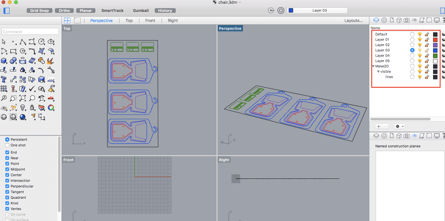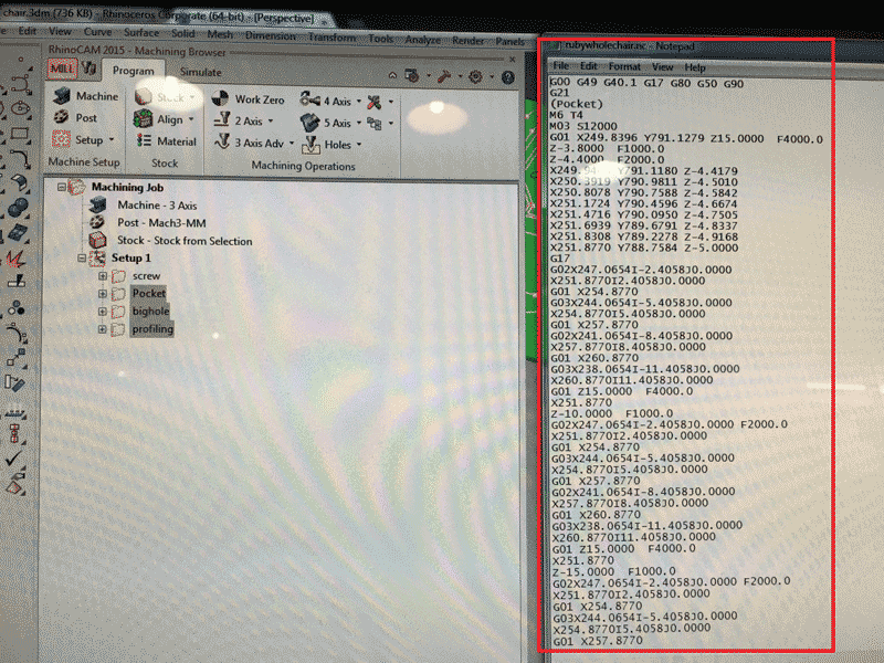 Before making the screw, check the material thickness by the catapillar and the material thickness is 15mm. Choose the 'Gumball view' in Rhino for better viewing. Also check the gap between each lines and it should be more than 6mm, otherwise the lines are too packed.